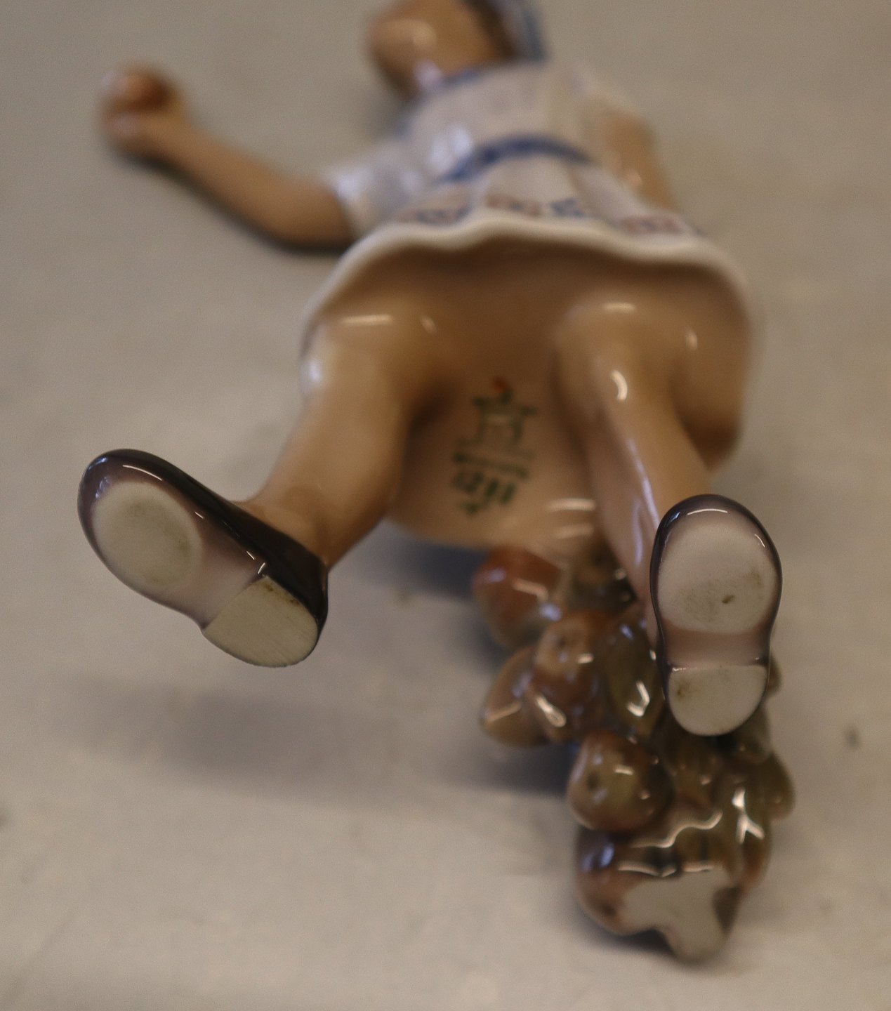 Dahl Jensen 1288 Girl with apple branch (DJ) 16 cm 1st Marked with the Royal Crown and DJ Copenhagen. In nice and mint condition Dahl Jensen Worked first for Bing & Groendahl B&G from 1897