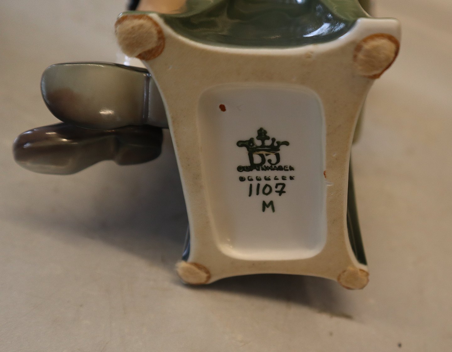 Dahl Jensen 1107 Pige med bog (DJ) 21 cm. Mærket med kongelig krone og DJ Copenhagen i hel og fin stand. Læsende pige