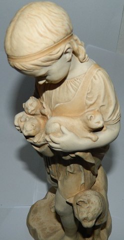 Beskrivelse: Figur i keramik af J. A. Jerichau: "Pige med killinger". Udført for P. Ipsen i slutningen af 19. århundrede. Fremstår i god stand med en par små skår. Ingen alvorlige skader eller reparationer. Fabriksmærket med P. IPSEN KJØBENHAVN samt modelnummer 703 og signeret af kunstneren. 27 cm høj. LIGNENDE KØBES
