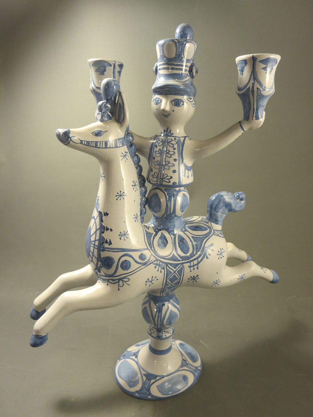 Bjørn Wiinblad figur, rytter til hest. 42 cm høj