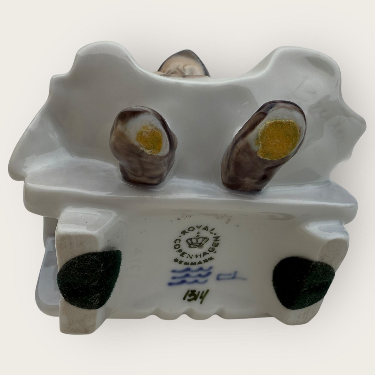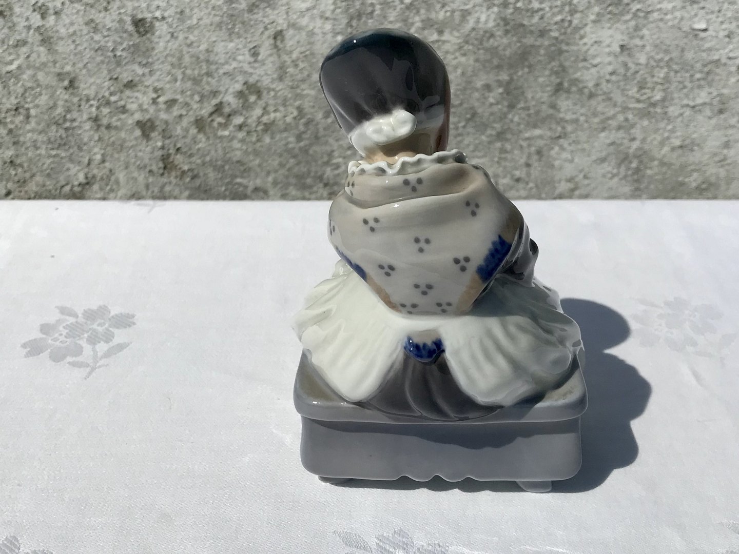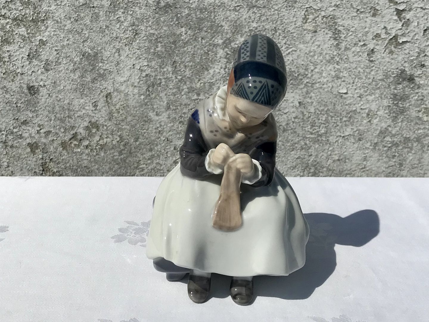 Beskrivelse: Royal Copenhagen, Strikkende Amagerpige #1314, 15cm høj, 8,5cm bred, 1.Sortering, Design Lotte Benter *Perfekt stand*