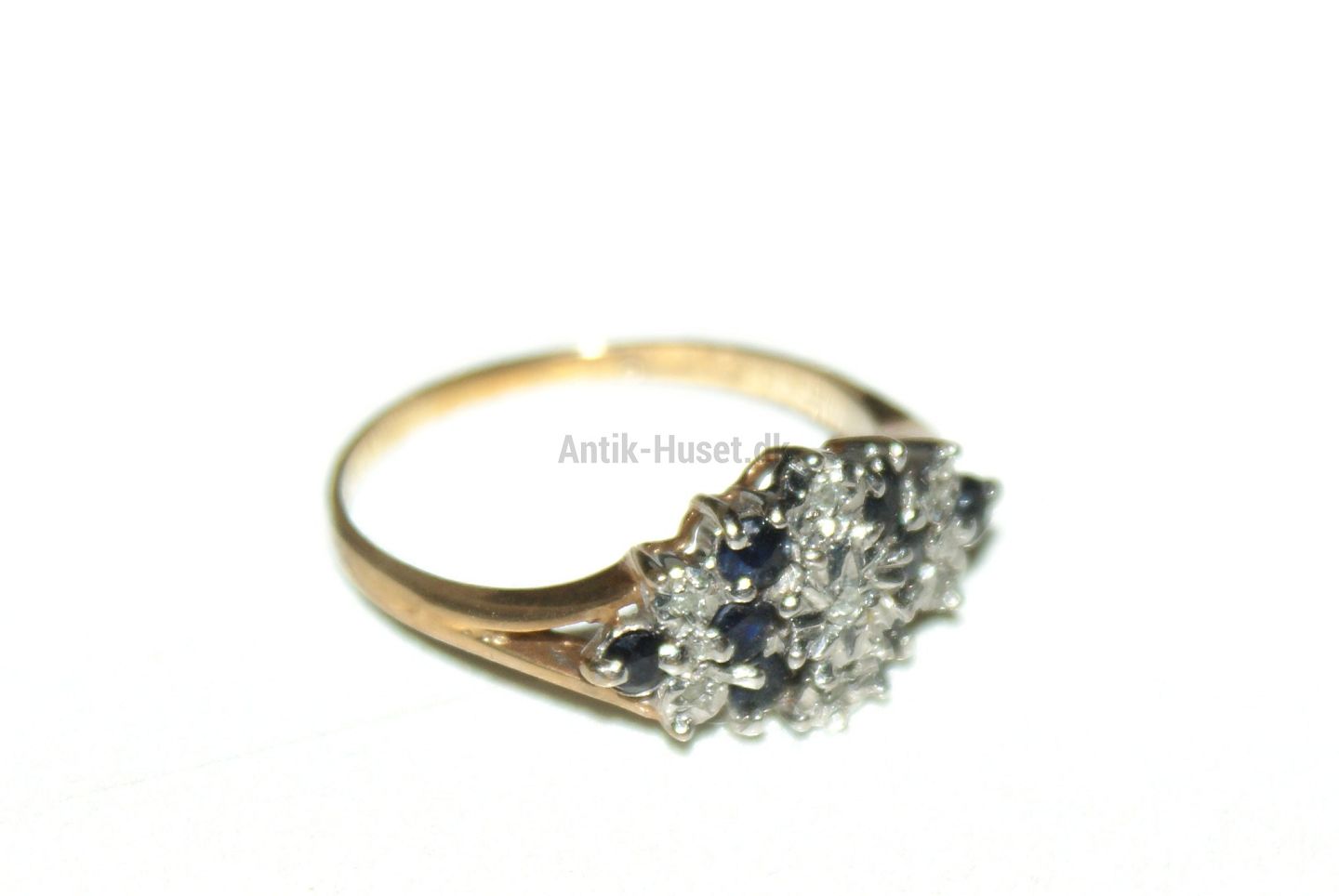 Beskrivelse: Guldring med Brillanter og Safir 9 Karat