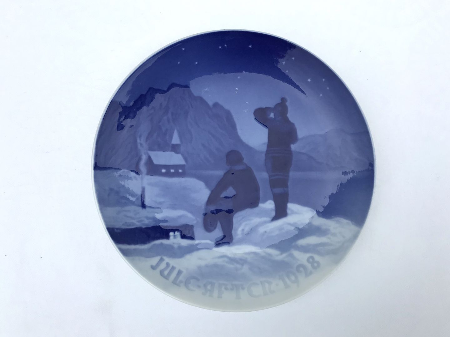 Beskrivelse: Bing & Grøndahl, Juleplatte, 1928, Grønlændere ved landsbykirke, 18cm i diameter, Design Johannes Achton Friis *Perfekt stand*