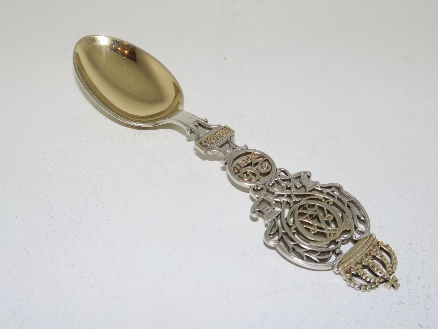 Beskrivelse: Anton Michelsen forgyldt sterlingsølv, mindeske fra 1940.