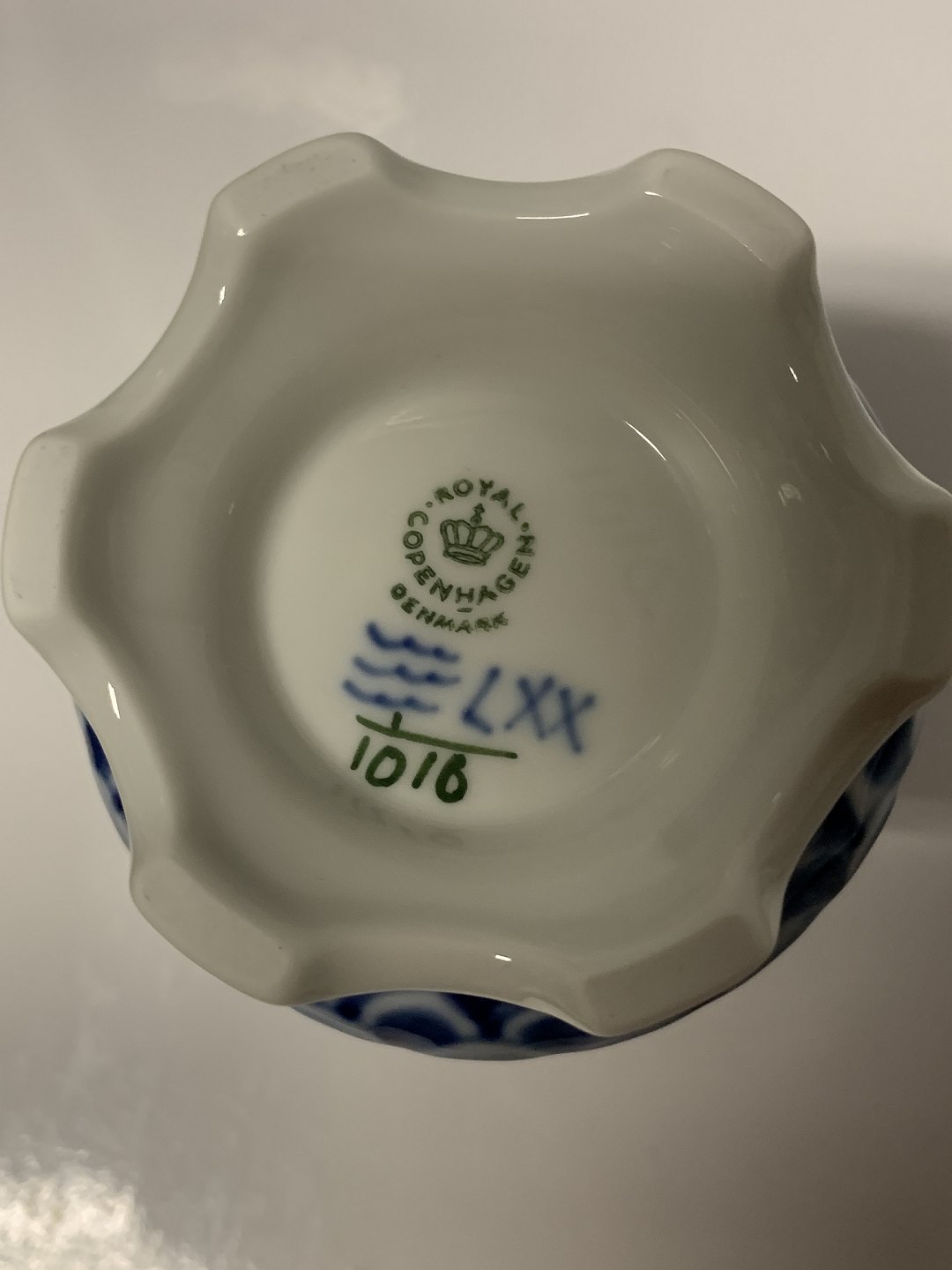 Description: Royal Copenhagen Mussel Painted Full Lace Vase
