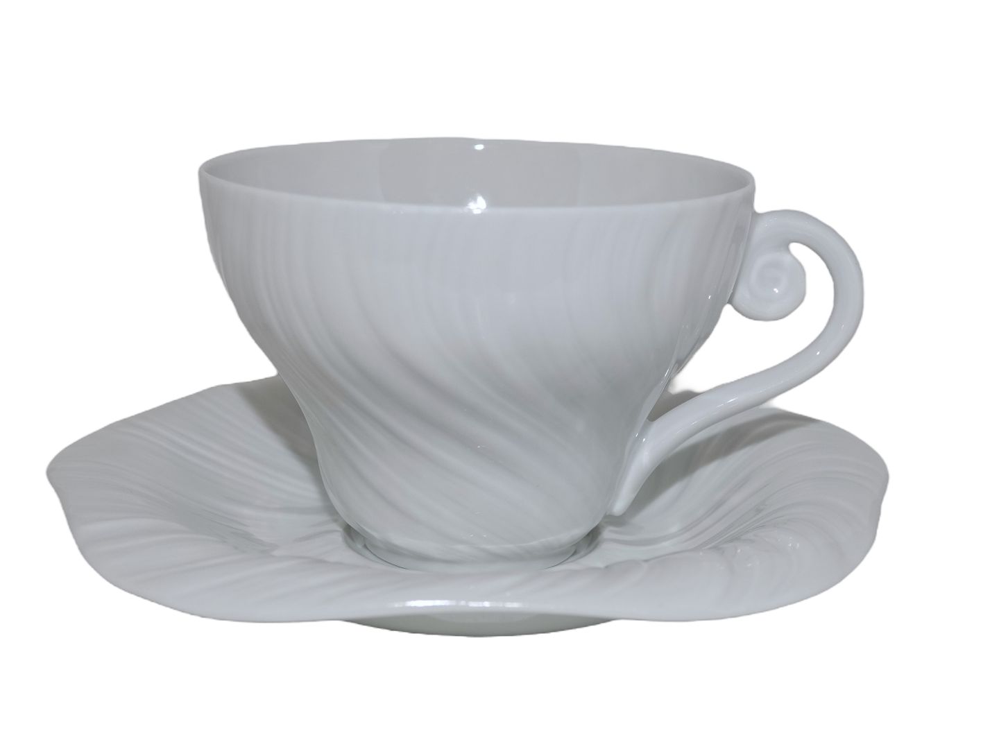 Beskrivelse: Royal Copenhagen Hvid Konkylie, stor kaffekop med tilhørende underkop.