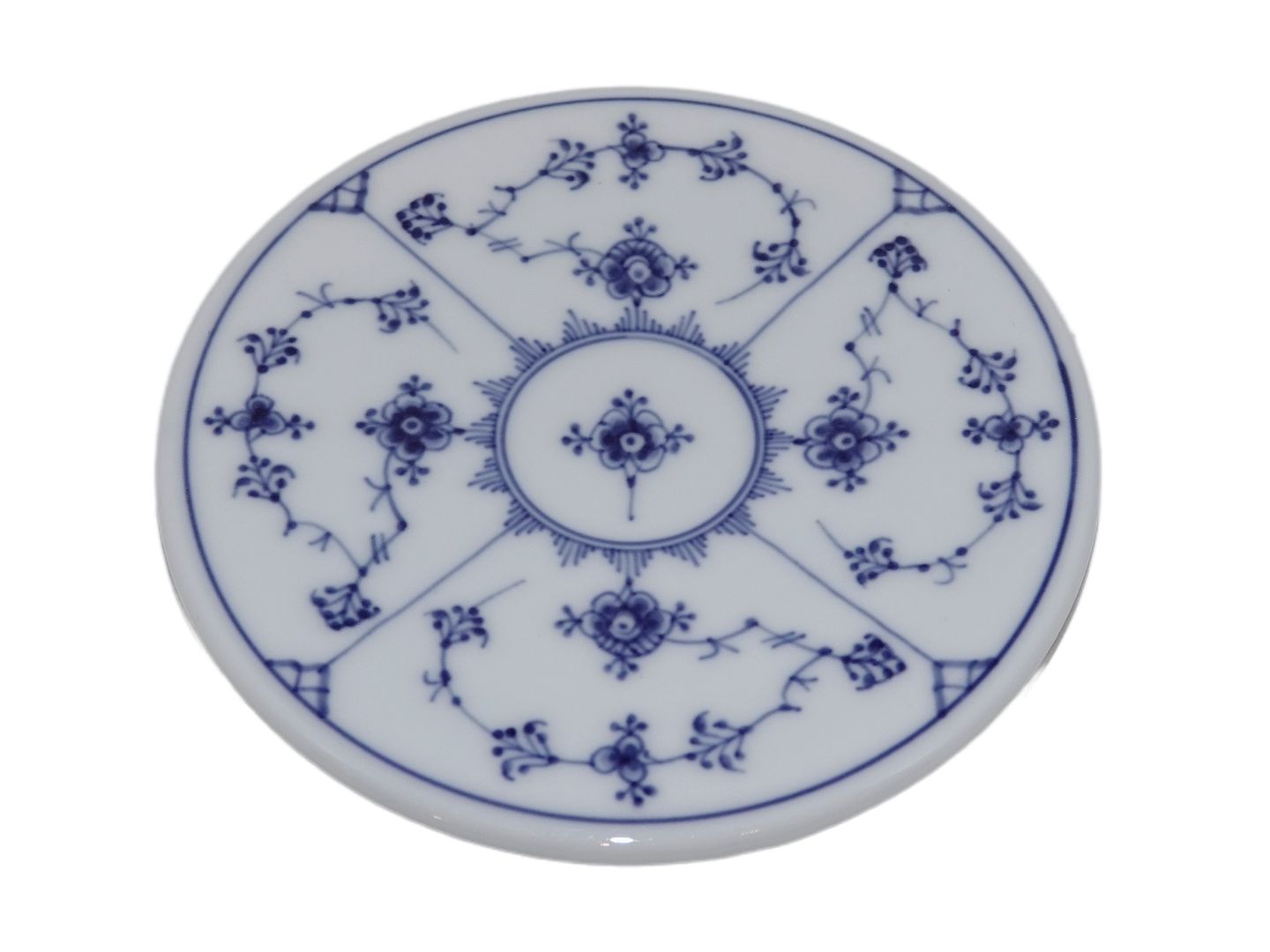 Beskrivelse: Royal Copenhagen Musselmalet Riflet, bordskåner / varmebrik.