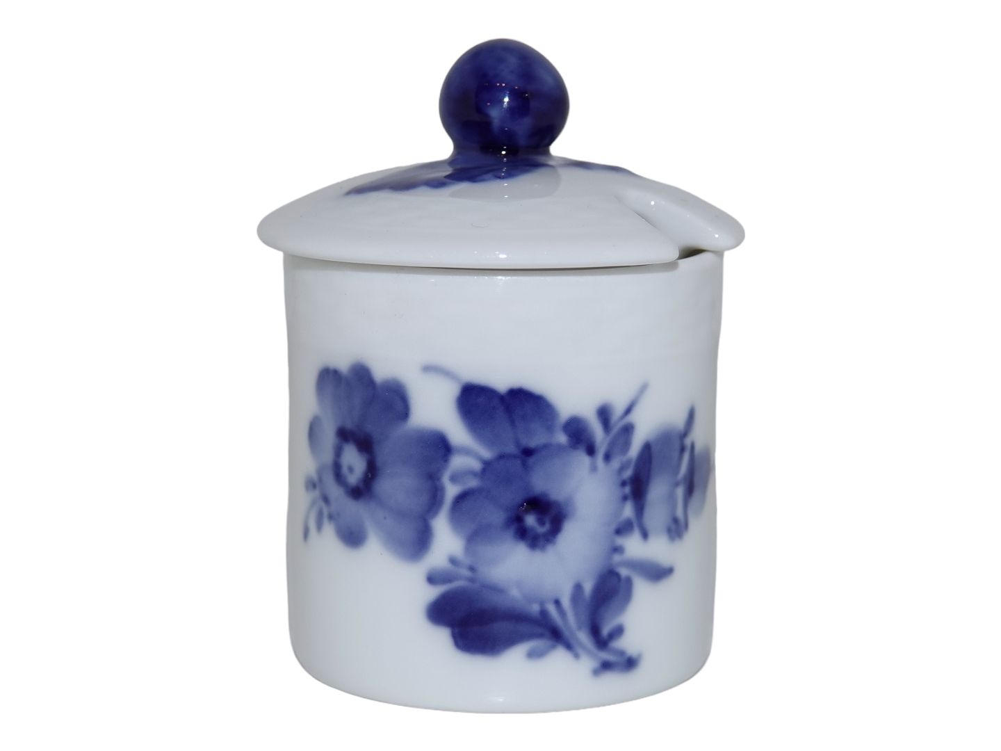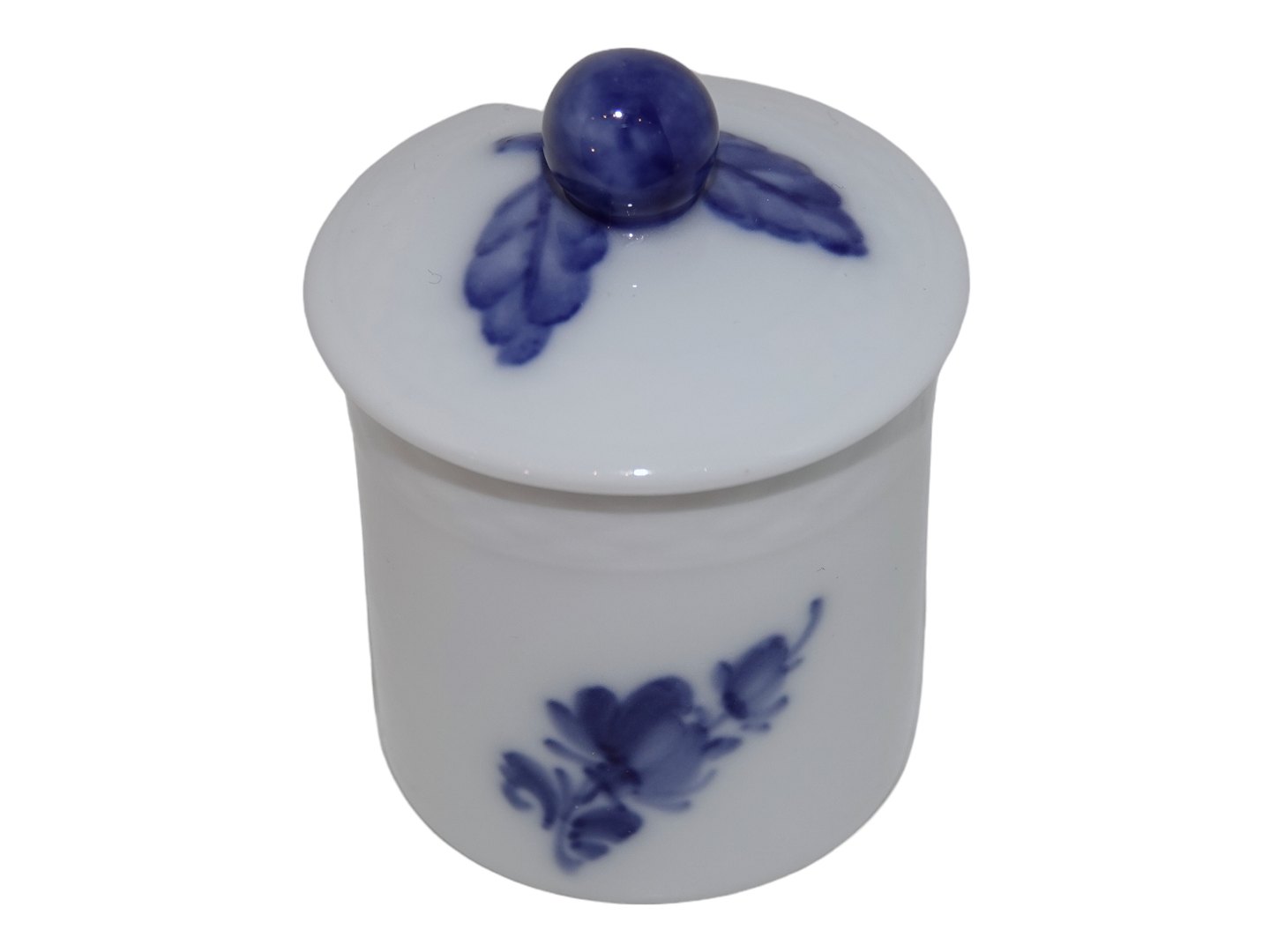 Beskrivelse: Royal Copenhagen Blå Blomst Flettet, lille sennepskrukke med tilhørende låg.