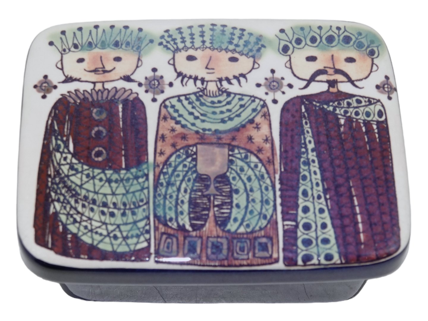 Beskrivelse: Aluminia Tenera, smørskål med Hellig Tre Konger.