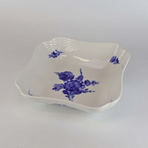Beskrivelse: Kvadratisk kartoffelskål i kongeligt porcelæn fra stellet Blå blomst flettet. No 10/8063