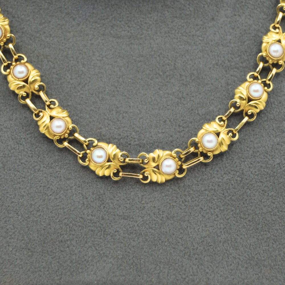 Early Georg Jensen necklace made of 18k gold set with pearls.