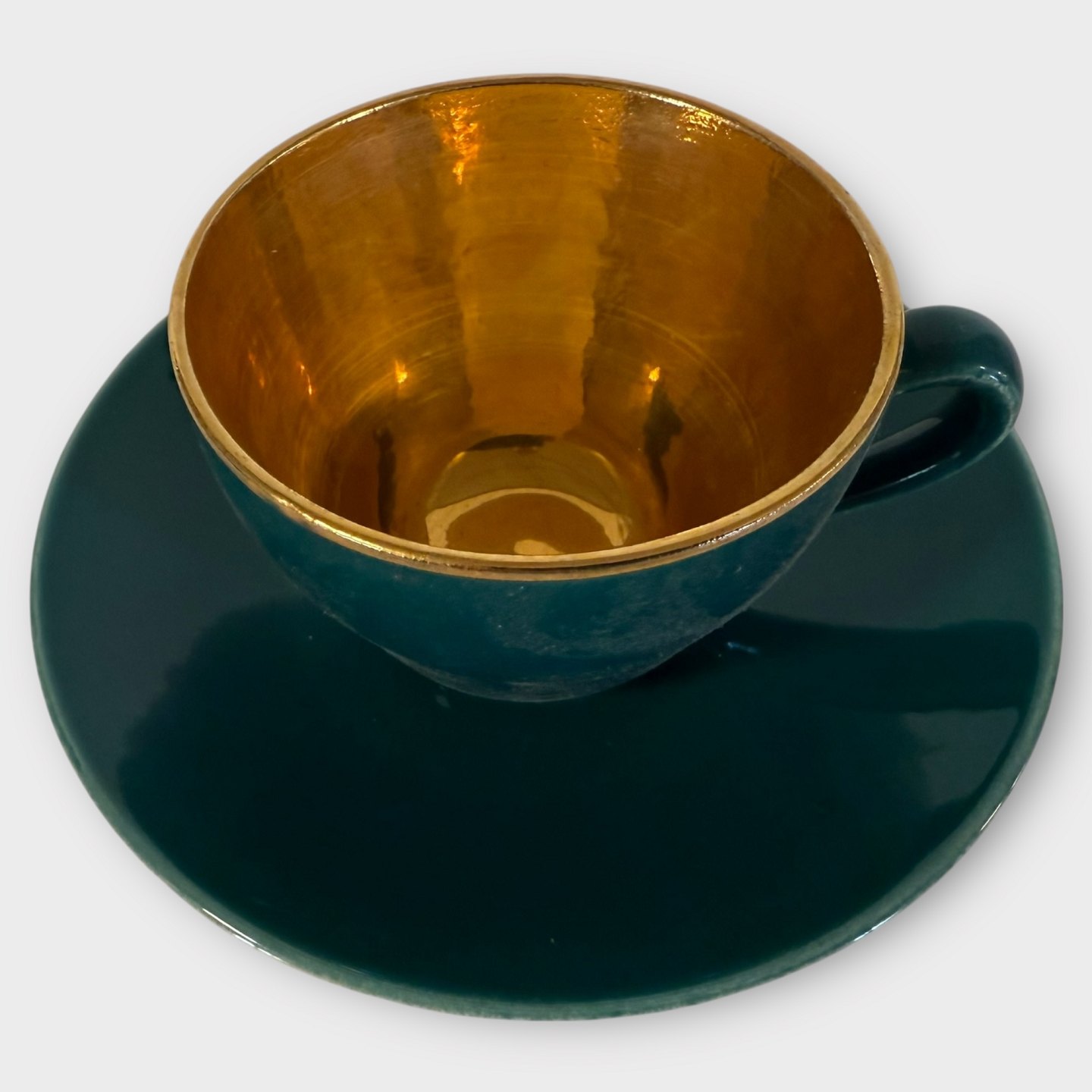 Description: Royal Copenhagen, Aluminia, Confetti, Mocca cup, Dark green, 7cm high, 5.5cm high, 2nd grade, saucer without gold rim - see last photo *Good condition*