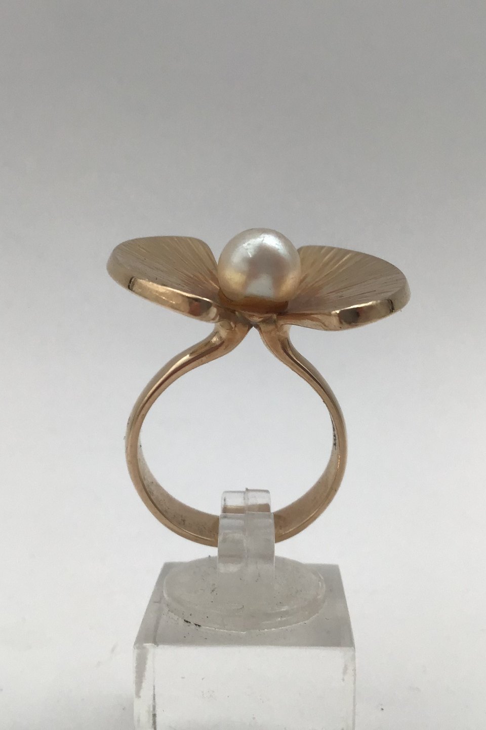 Beskrivelse: Bent Gabrielsen 14K Guld Ring m Perle Måler Ring Str. 57 (US 8) Vægt 13.1 gr (0.46 oz)
