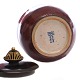 Beskrivelse: Patrick Nordström, tilskr., for Royal Copenhagen, lågskål i stentøj med okseblodsglasur og bronzelåg