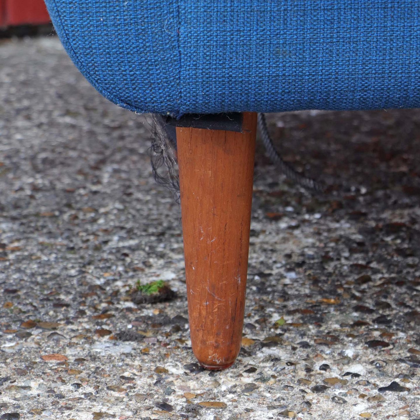 Fremstår med brugsspor på stof og ben. Trænger til ompolstring.