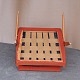 Beskrivelse: Lænestol fra 1950-60erne med stel i lakeret teaktræ. Stolen er betrukket med orange uldstof