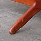 Beskrivelse: Lænestol med stel i lakeret teaktræ og hynder med springfjeder. Hynderne er betrukket med meleret råhvidt uldstof. Model GE 290