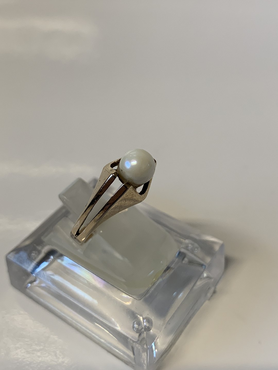 Beautiful and elegant ladies' ring in 14 carat gold, with inlaid pearl. Size 54