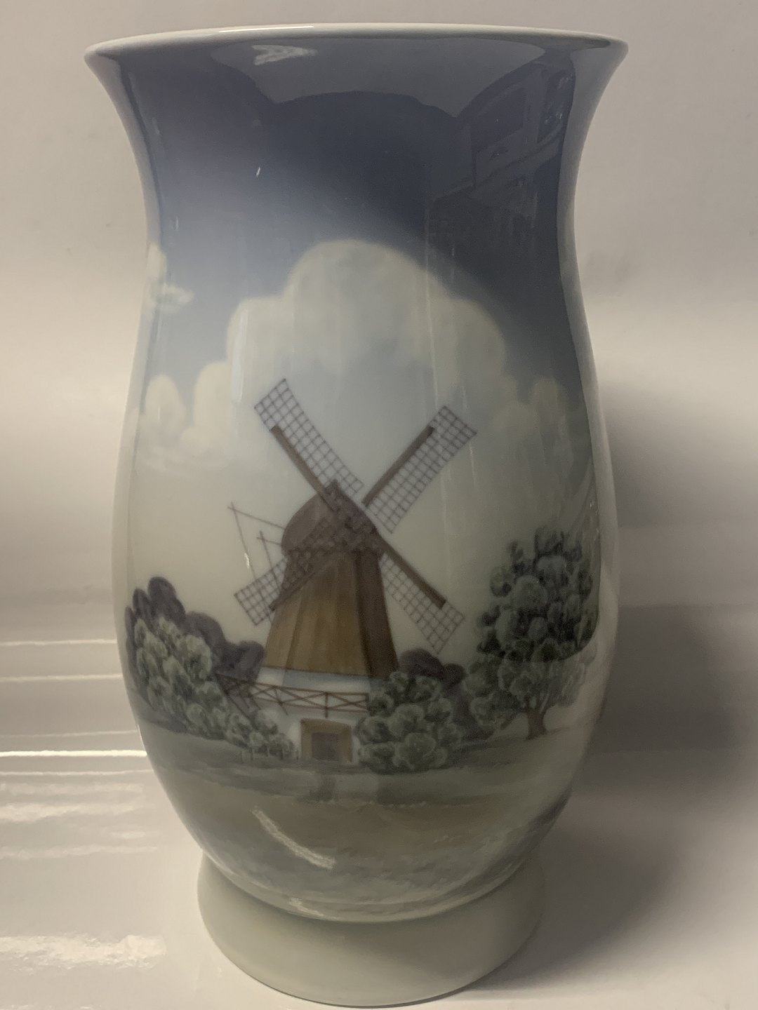 Description: Large Bing & Grondahl vase with Danish windmill. The vase is decorated all the way around.