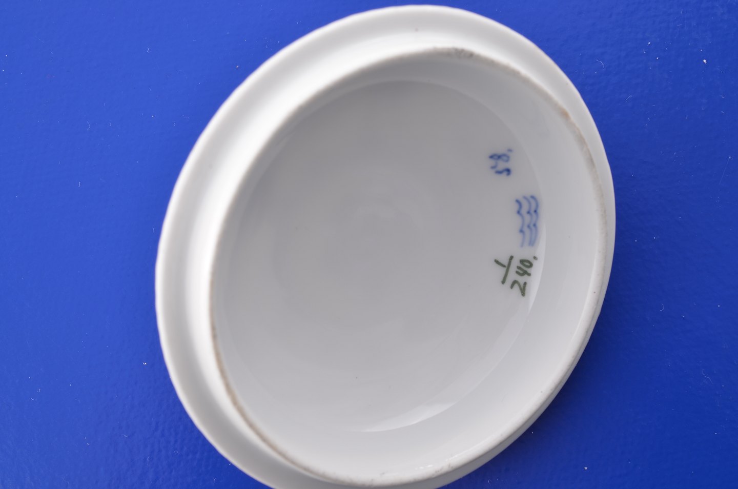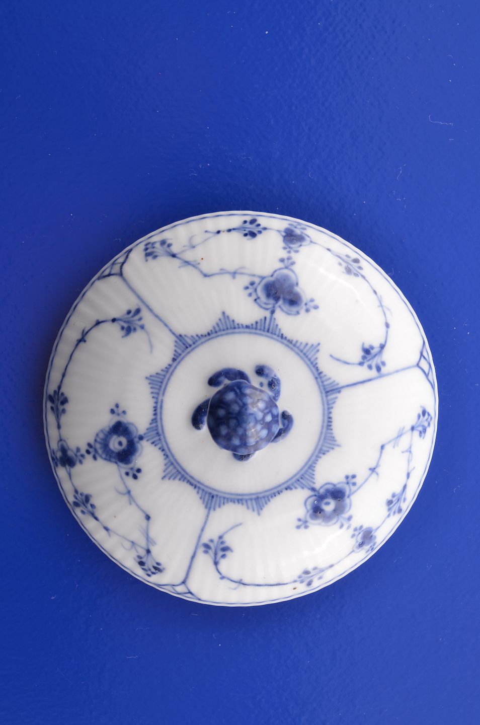 Beskrivelse: Kgl. Musselmalet riflet Kongelig porcelæn. Royal Copenhagen Musselmalet riflet låg nr. 1/240. Diameter 9,8 cm. Inder-diameter 8,5 cm. 1. sortering, fin hel stand. Produceret i Danmark.