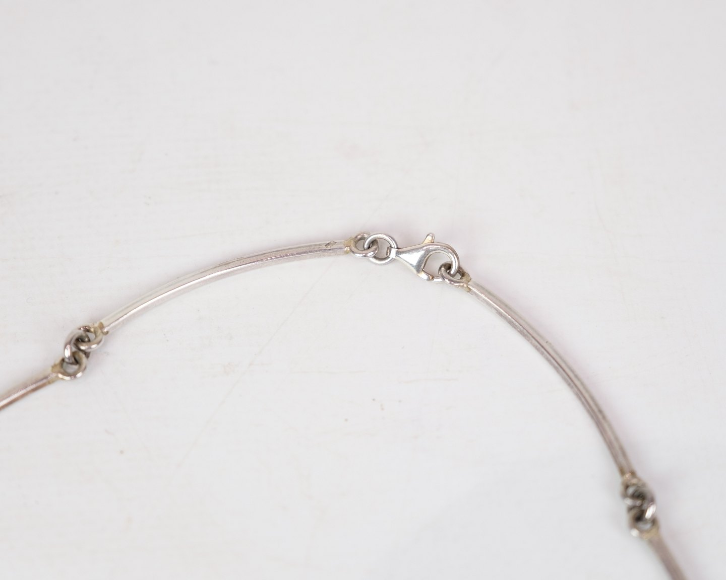 Beskrivelse: Halscollier fra 1950’erne i sterling sølv 925 med stor, gul ravsten som midtpunkt.