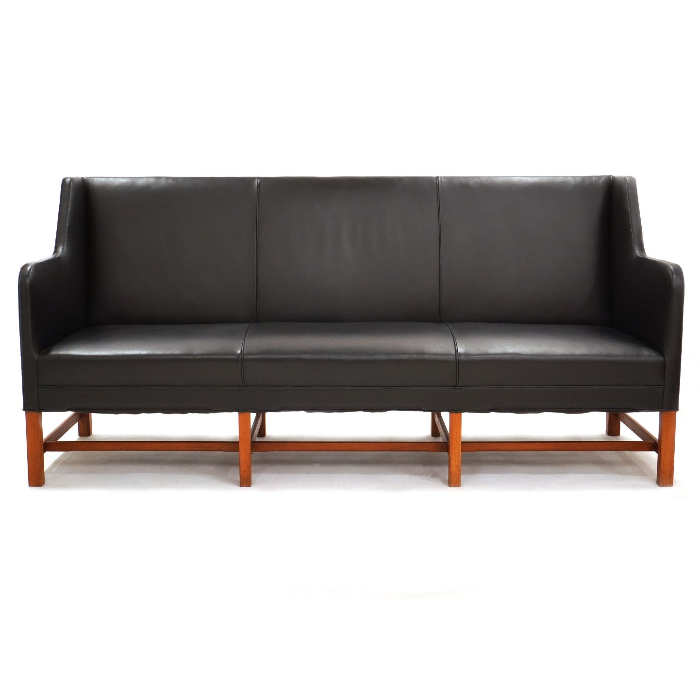Beskrivelse: Kaare Klint trepersoners sofa betrukket med sort læder 5011