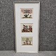 Beskrivelse: Tre små linoliumssnit i skifteramme, med forskellige motiver. Del af et sæt.