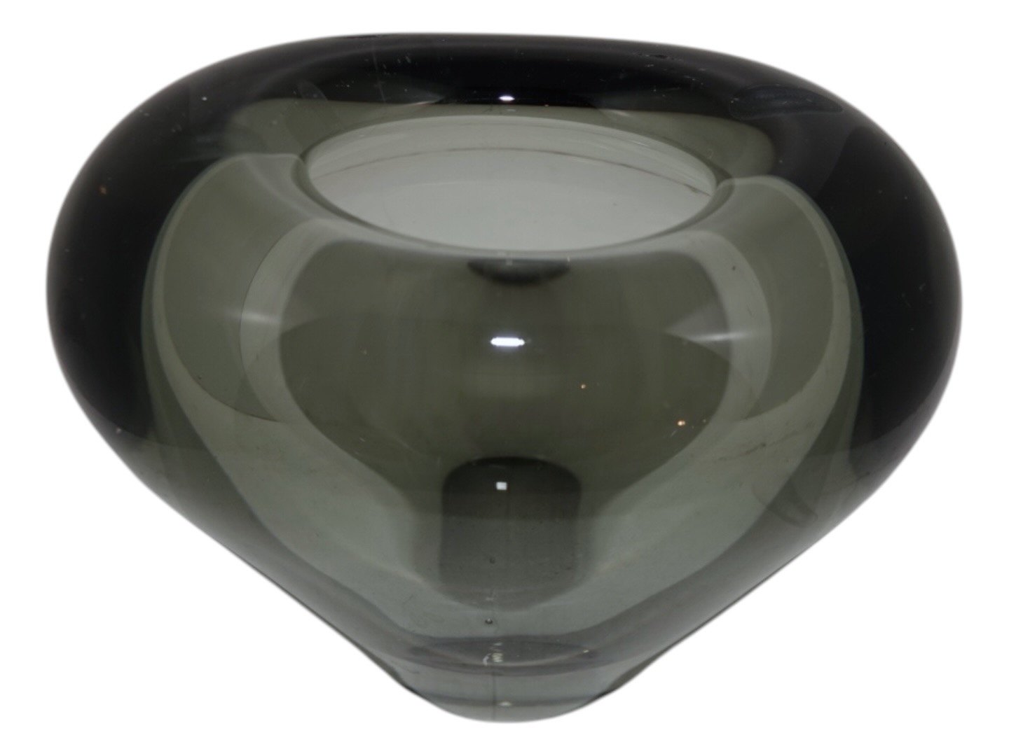 Description: Holmegaard smoke colour Heart vase designed by Per Lütken.