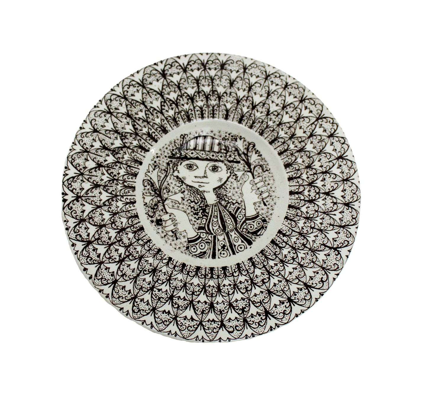 Brun platte med kvindemotiv, Bjørn Wiinblad