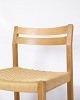 Beskrivelse: Sæt af fem spisebordsstole, model 401, designet af Jørgen Henrik Møller for JL Møllers Møbelfabrik i 1960’erne. Udført i massivt egetræ med håndflettet sæde i planflet. Klassisk dansk møbeldesign med fokus på kvalitet og håndværk. Stolene står i meget pæn stand.