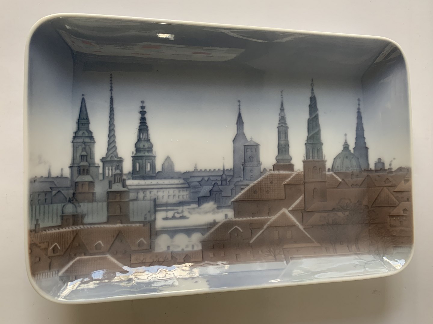 Description: Bing & Grondahl square dish (originally ashtray) with the beautiful towers