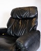 Beskrivelse: Sæt af to lænestole med fodskammel, polstret i sort læder med stel i formbøjet bøg. Et eksempel på klassisk skandinavisk design med fokus på komfort og funktionalitet.