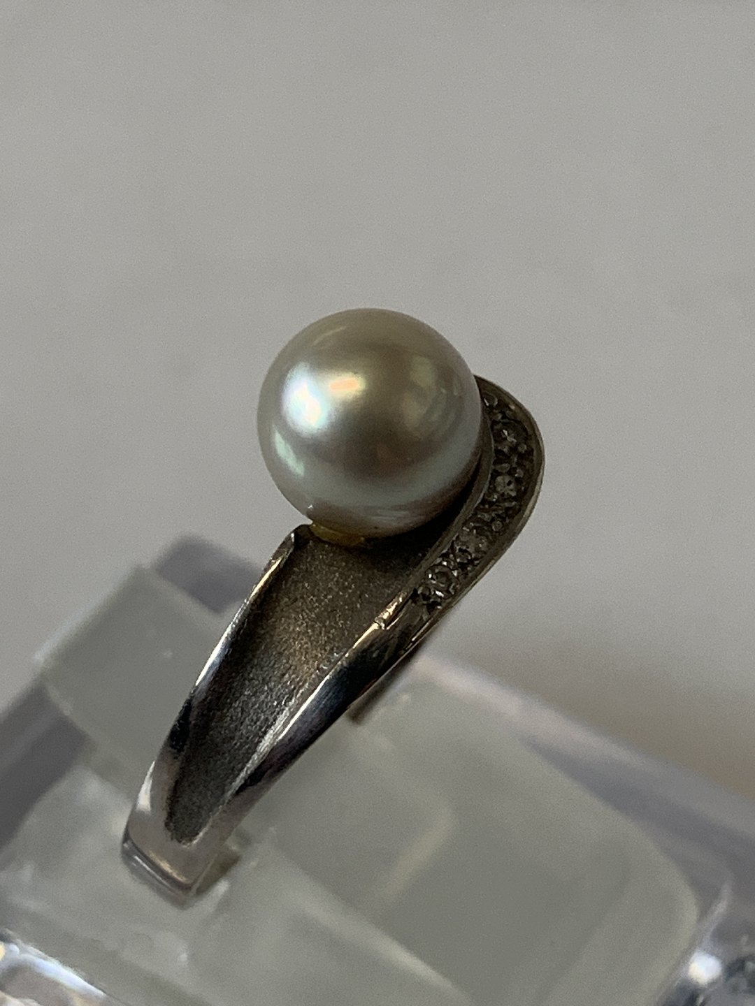 Beskrivelse: Hvidguldsring med Perle & Brillanter, 14 Karat