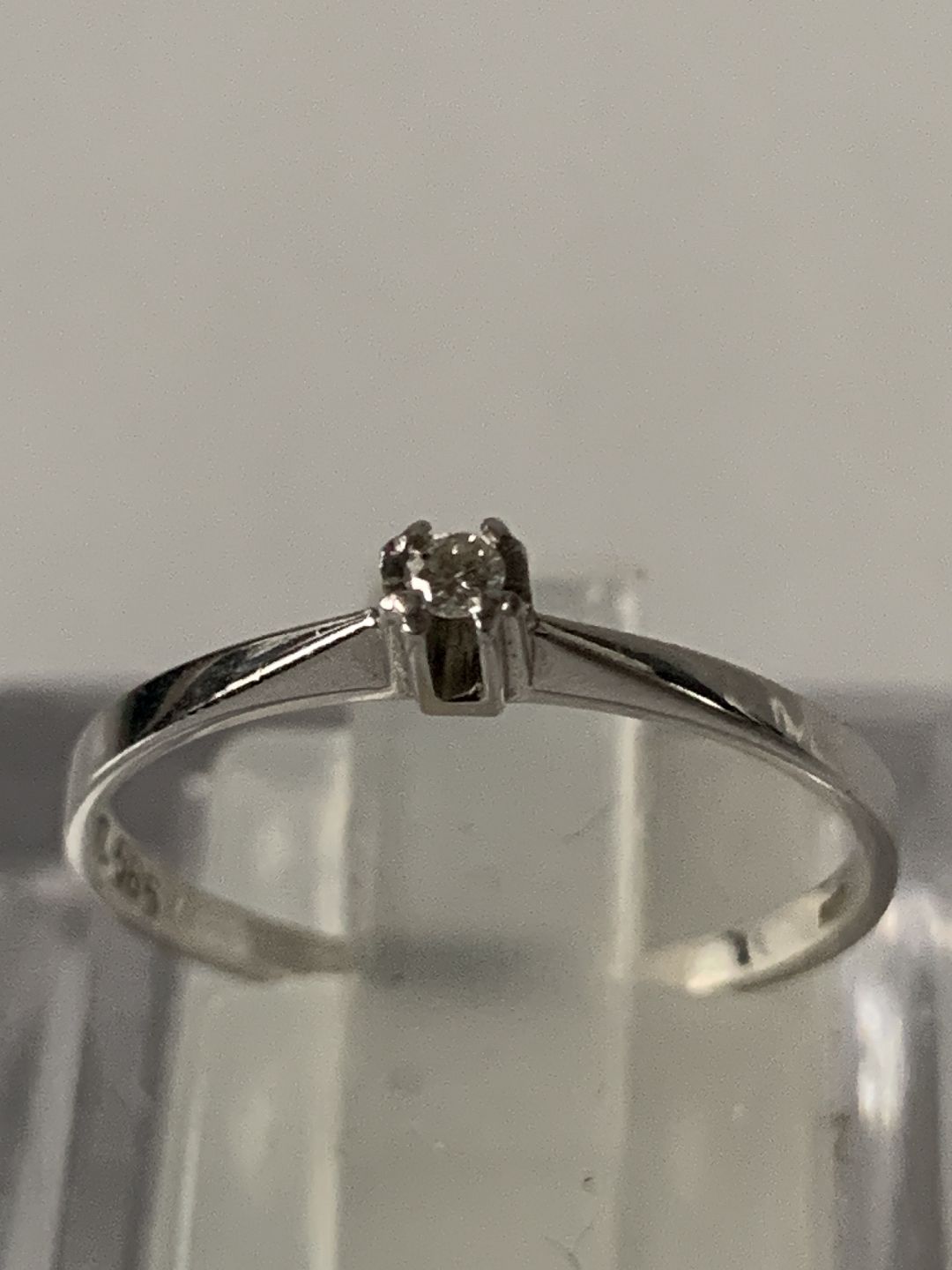 Beskrivelse: Guldring med Brillant 14 Karat, Hvidguld