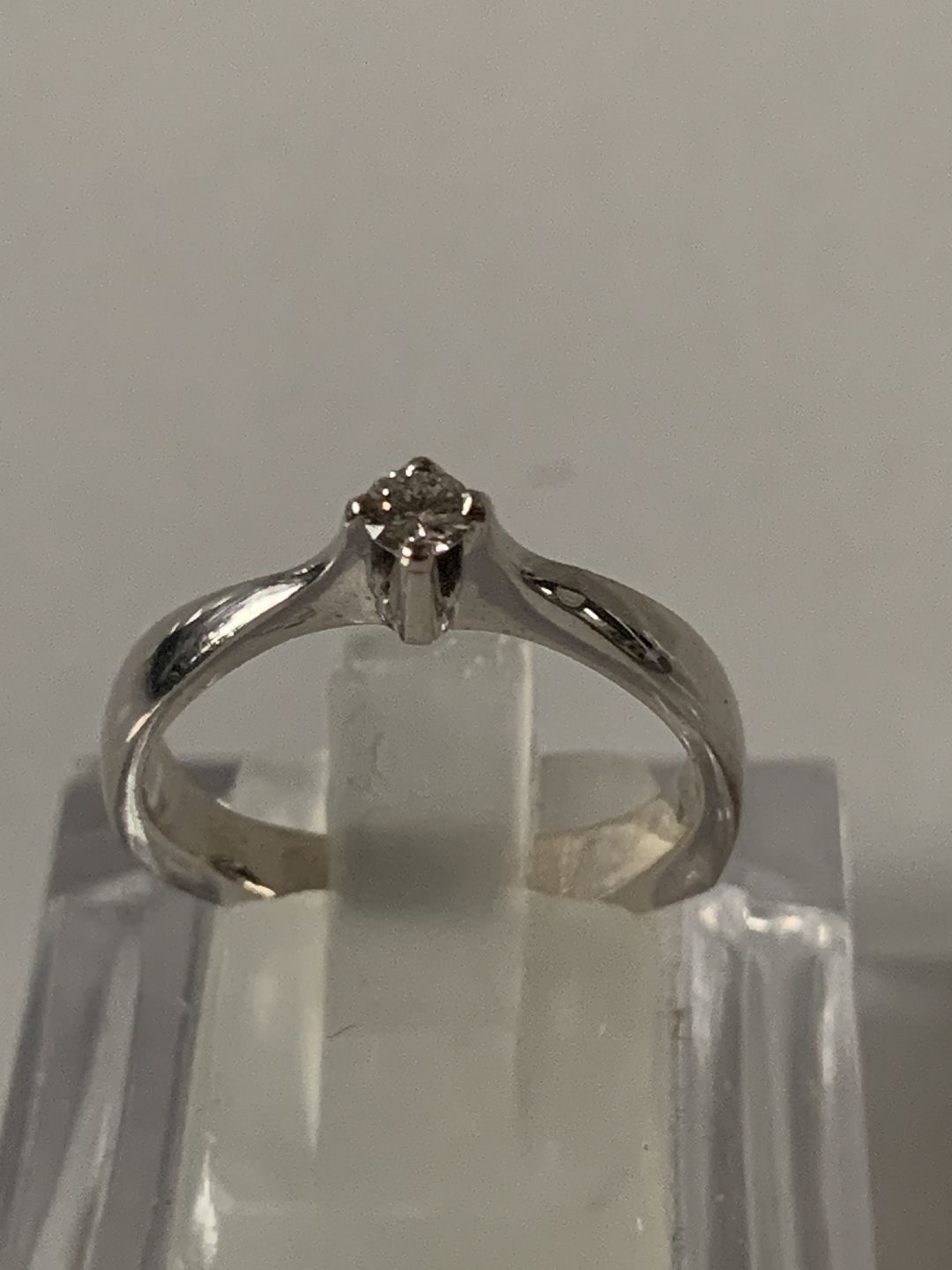 Beskrivelse: Hvidguldsring med Brillant, 14 Karat