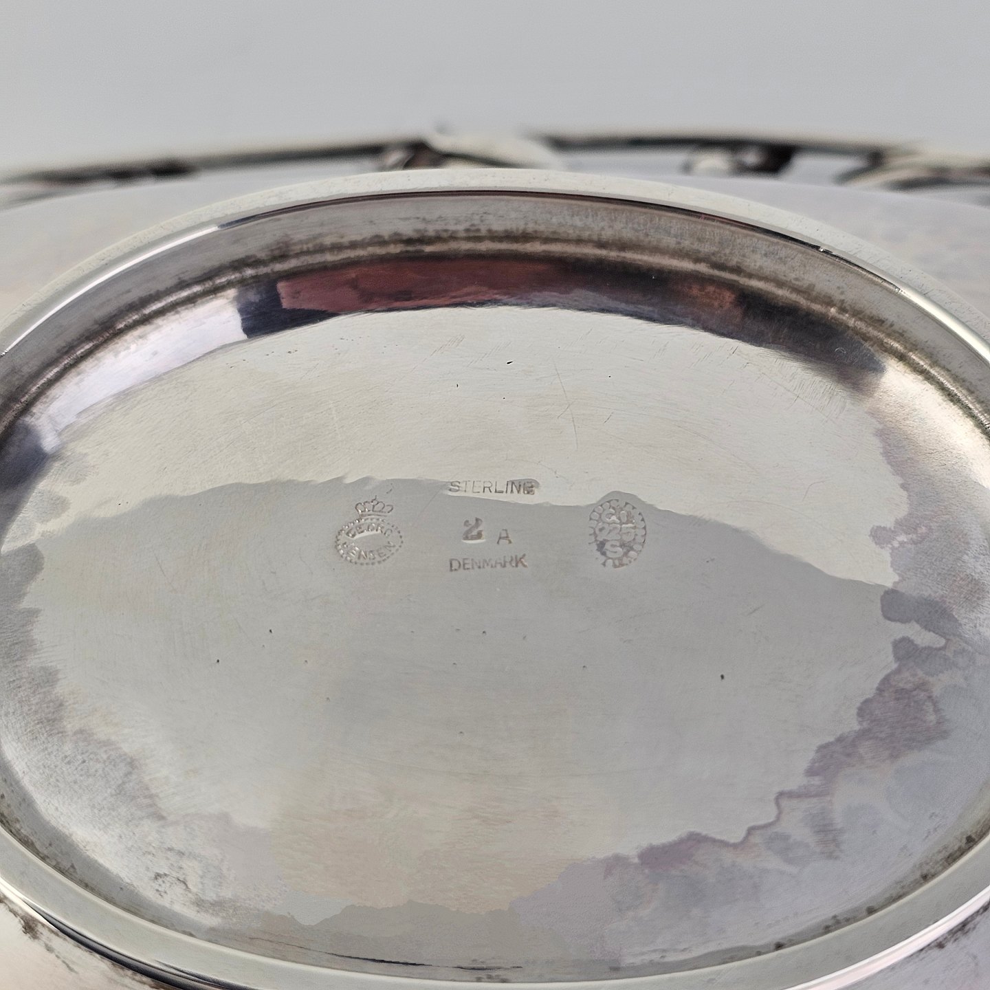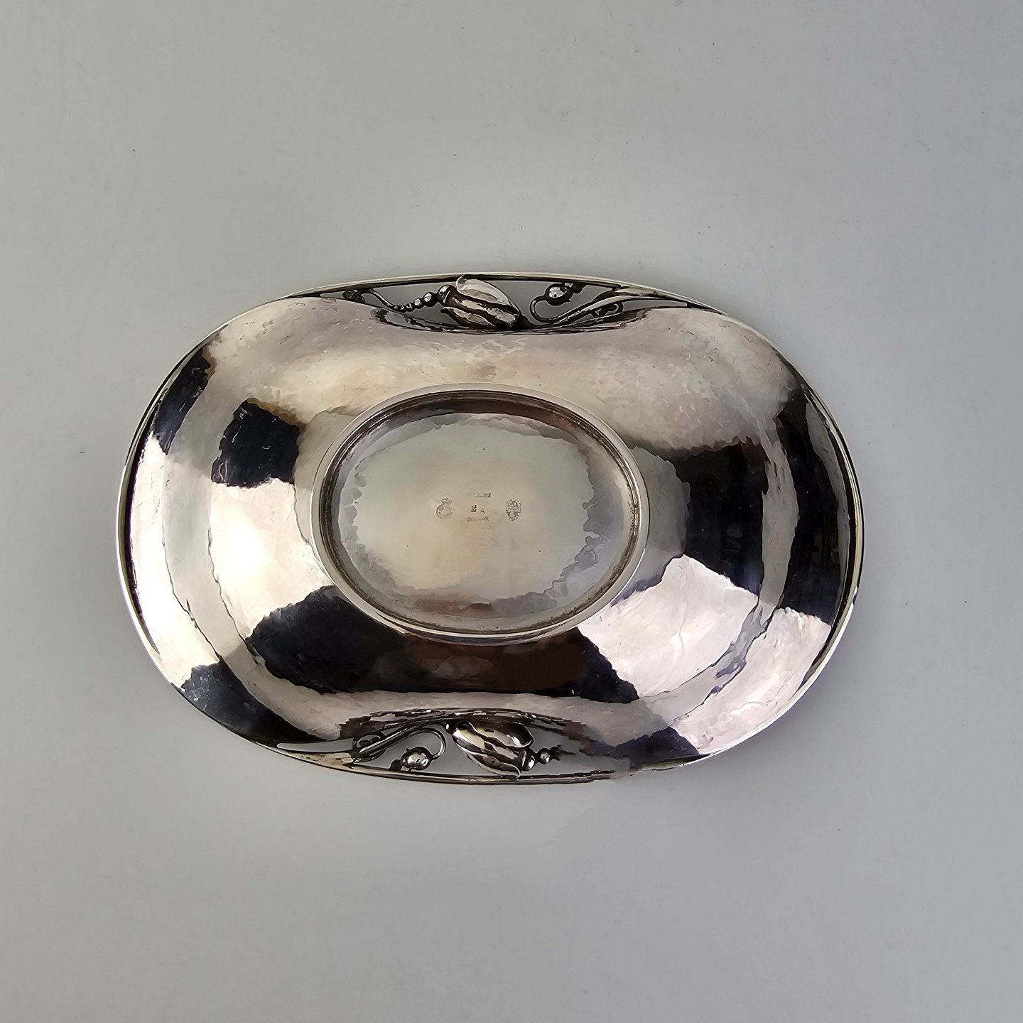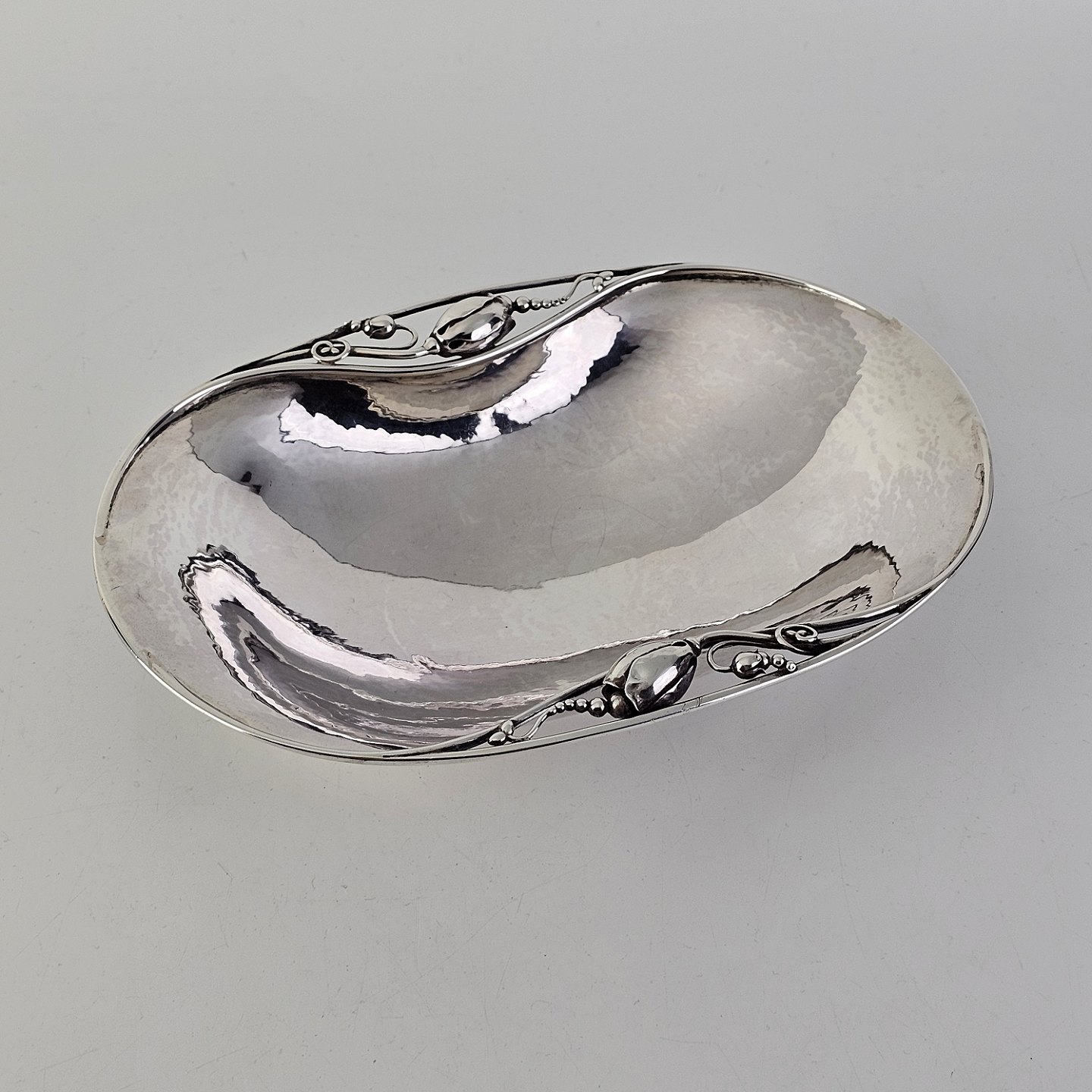 Beskrivelse: Ovalt fad af sterling sølv, med hanke.