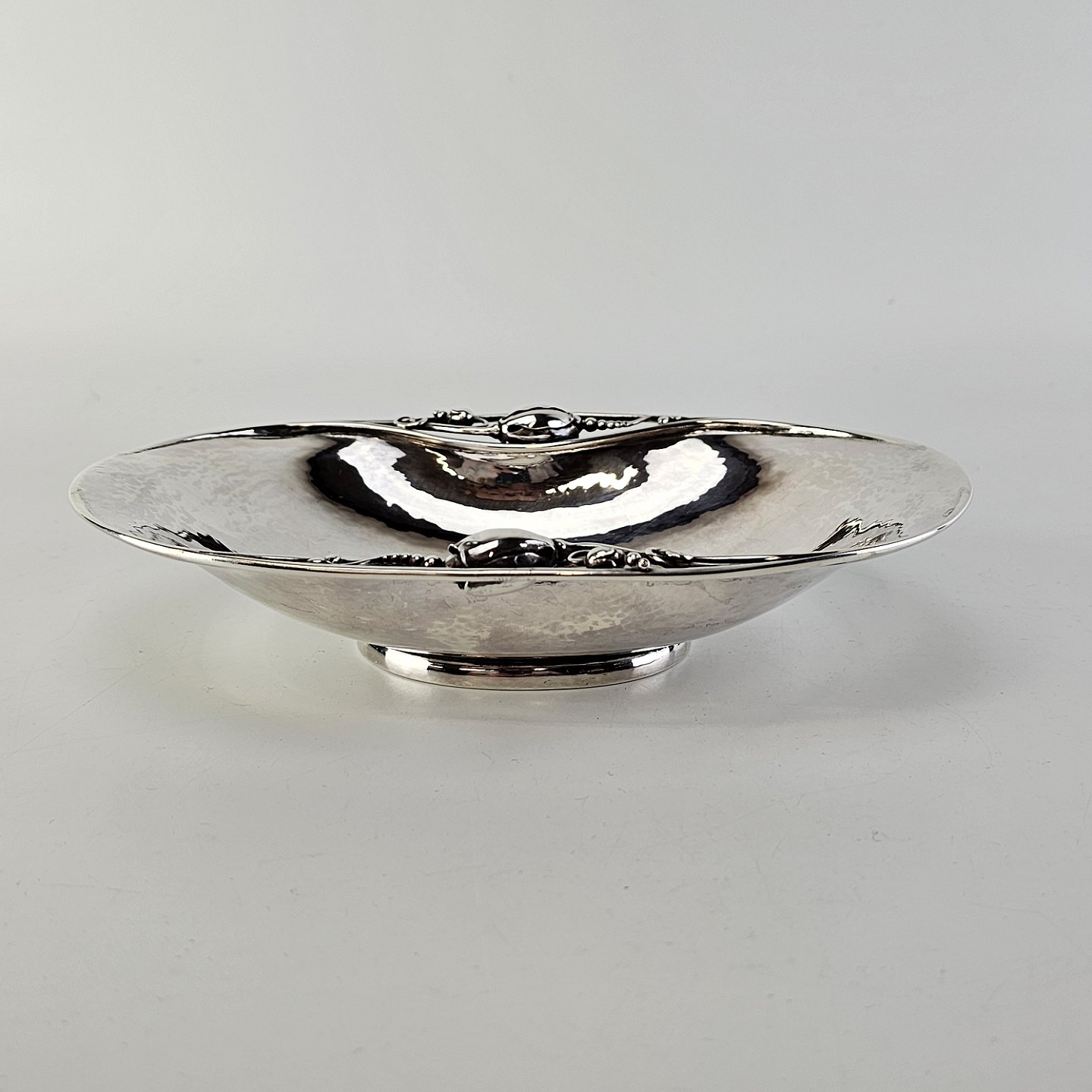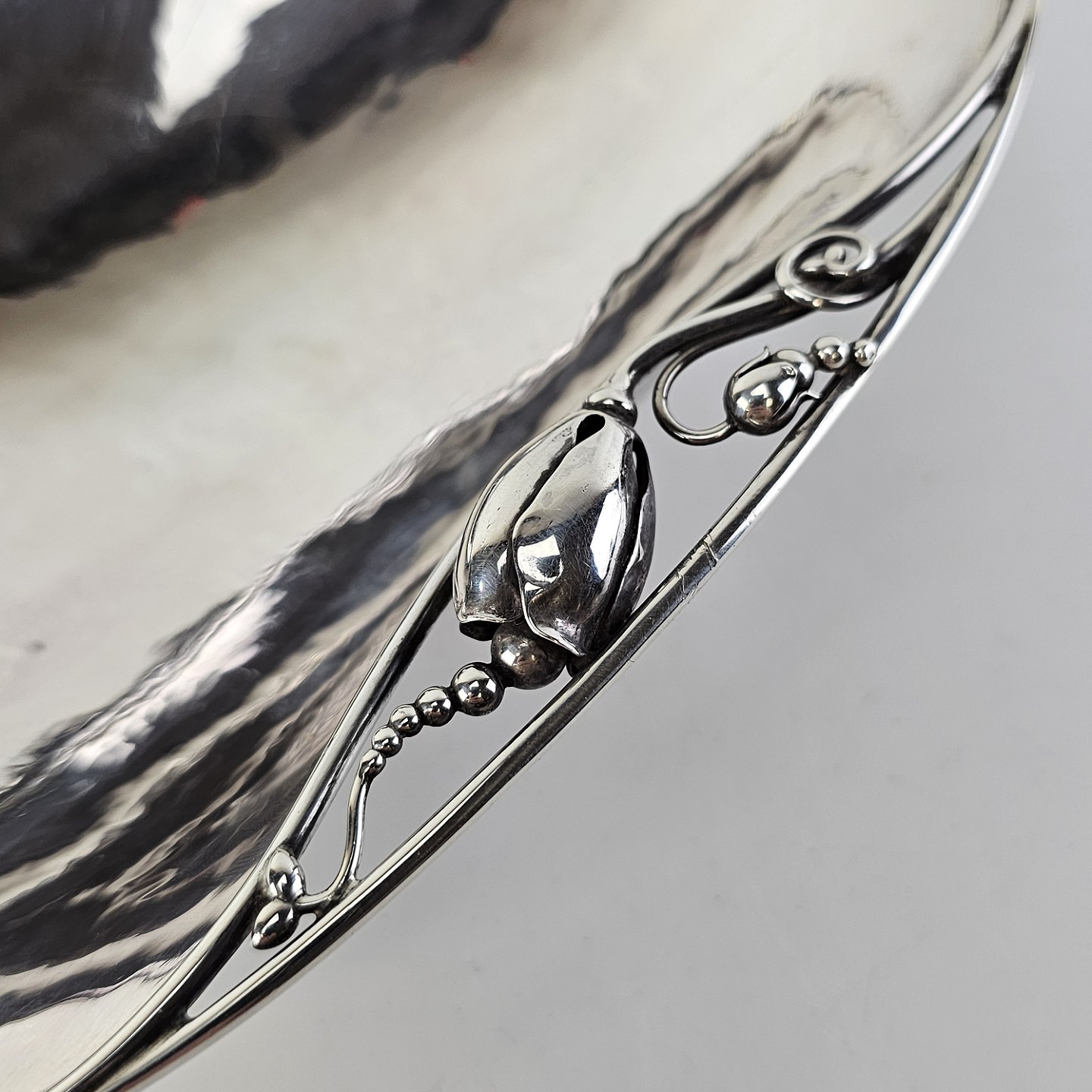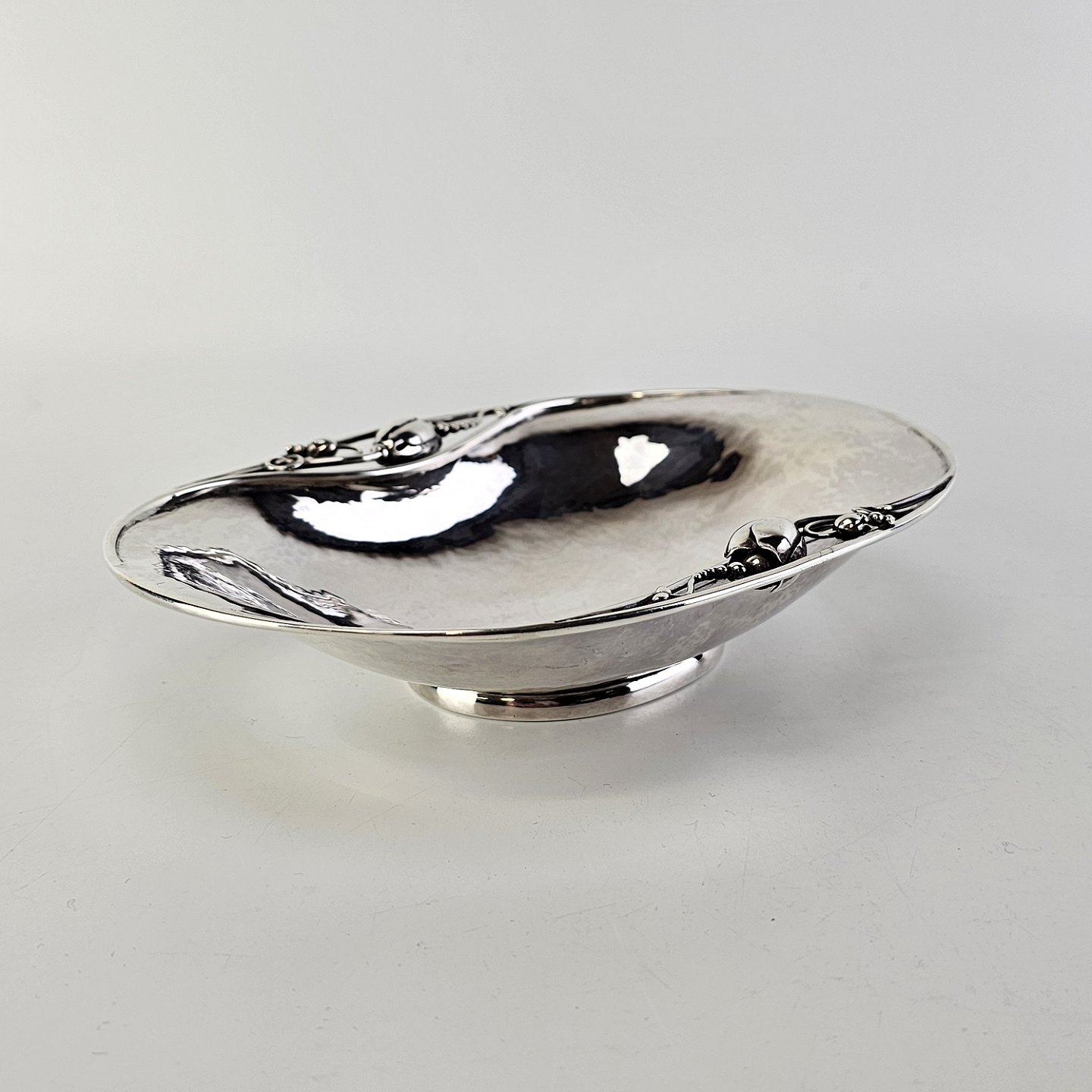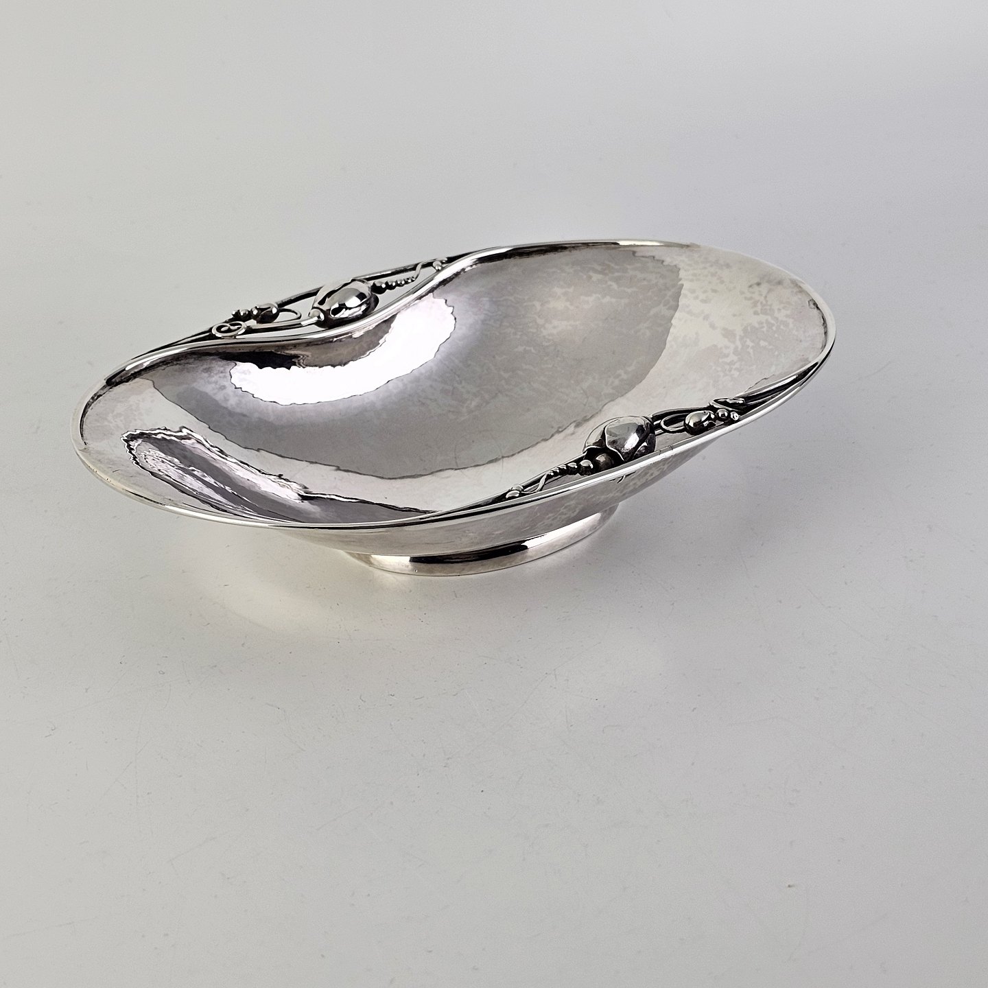 Beskrivelse: Ovalt fad af sterling sølv, med hanke.