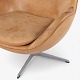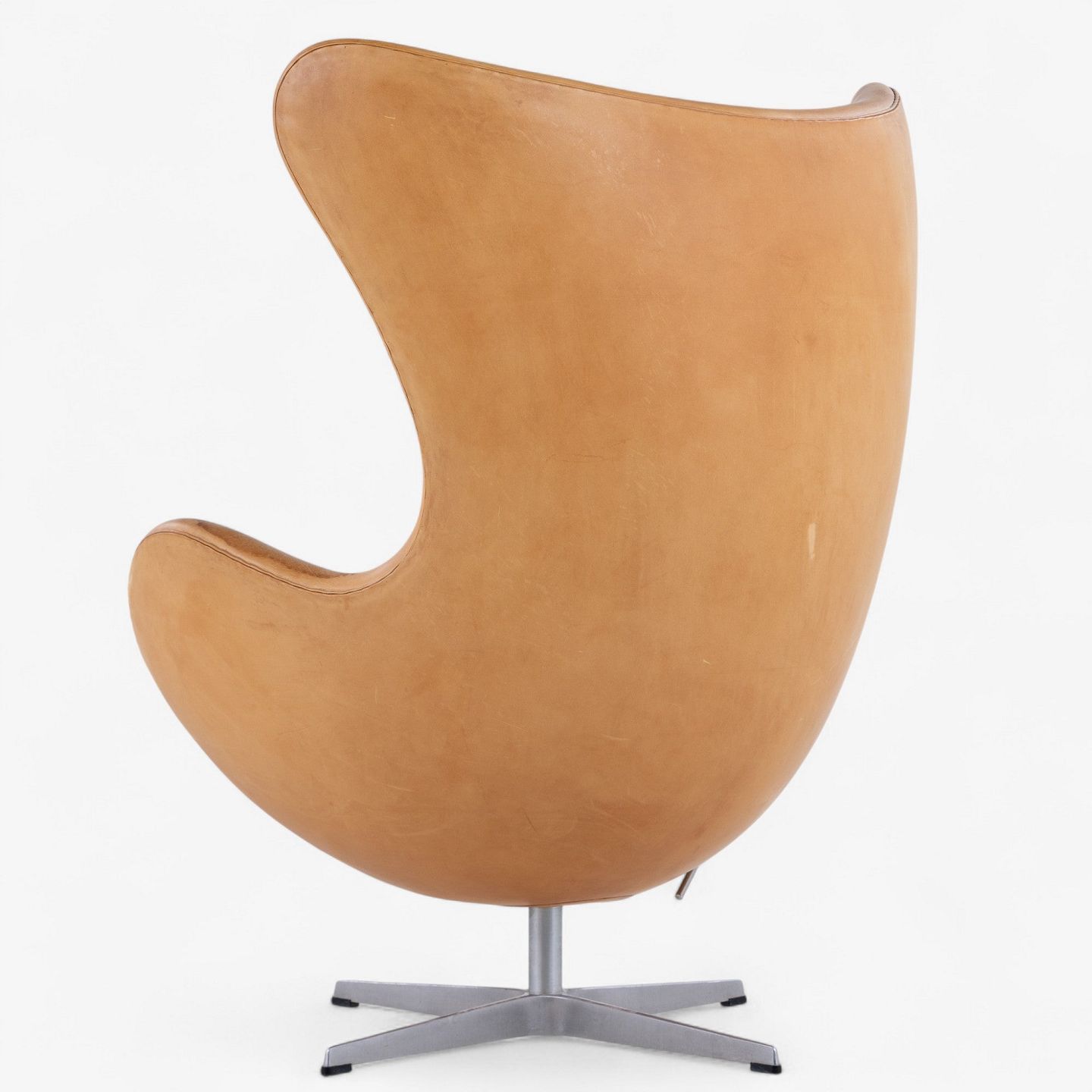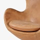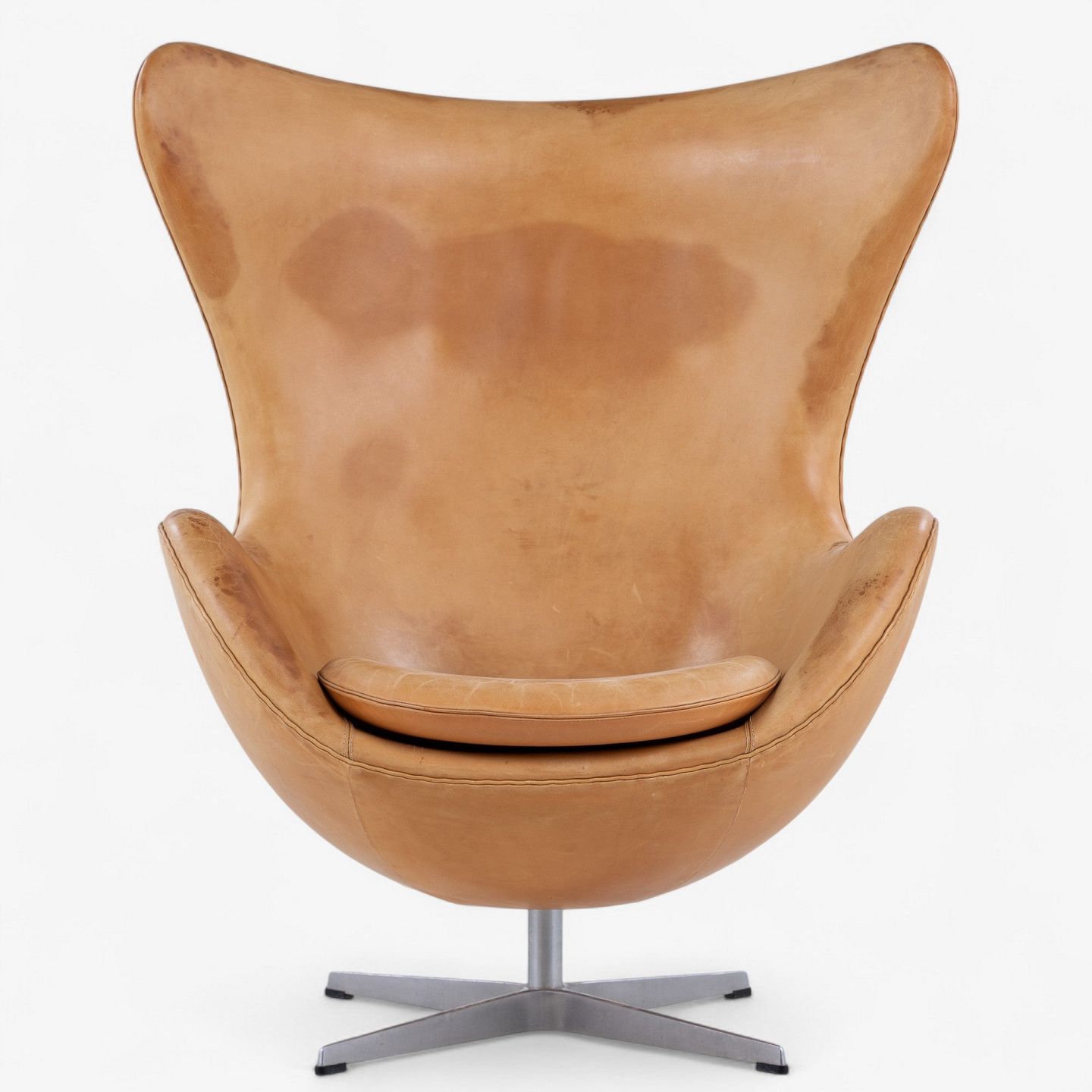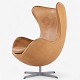 AJ 3316 - 'The Egg' armchair in patinated natural leather on an aluminum base. The Egg (1958) was designed for the SAS Royal Hotel in Copenhagen together with the Swan and the Pot. The chair is a design icon today.