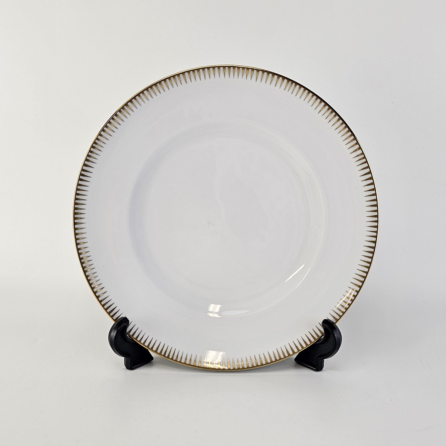 Hvidt porcelæn dekoreret med guld motiv og guldkant