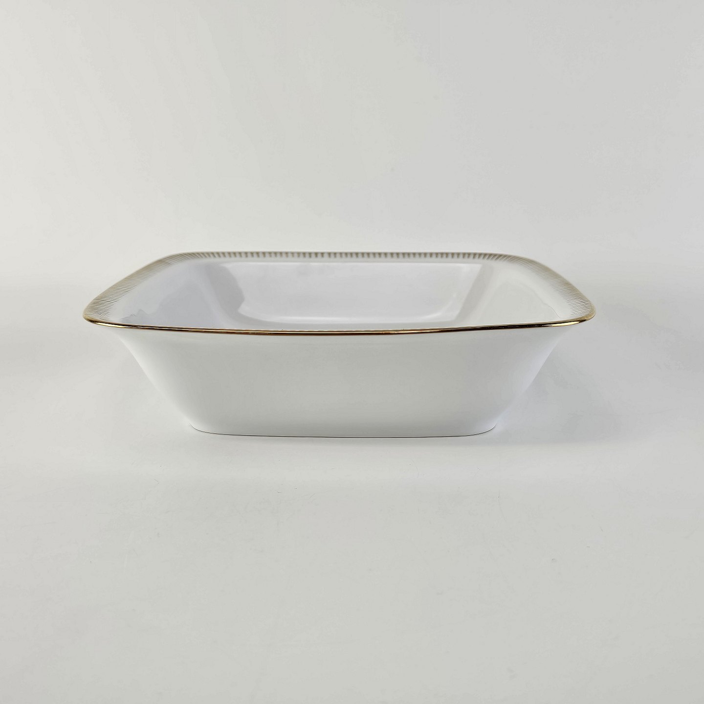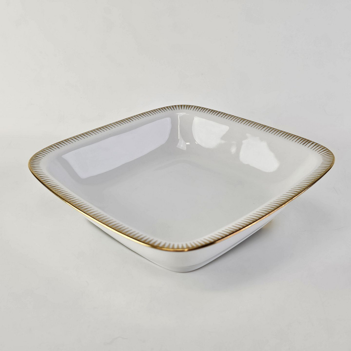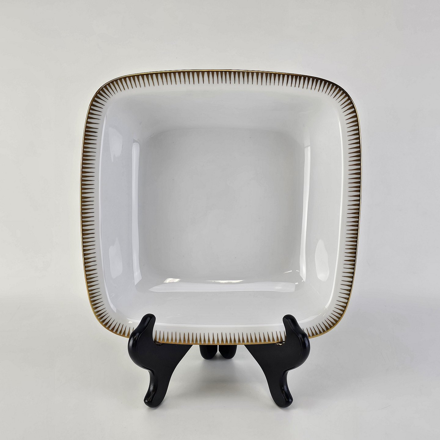 Hvidt porcelæn dekoreret med guld motiv og guldkant