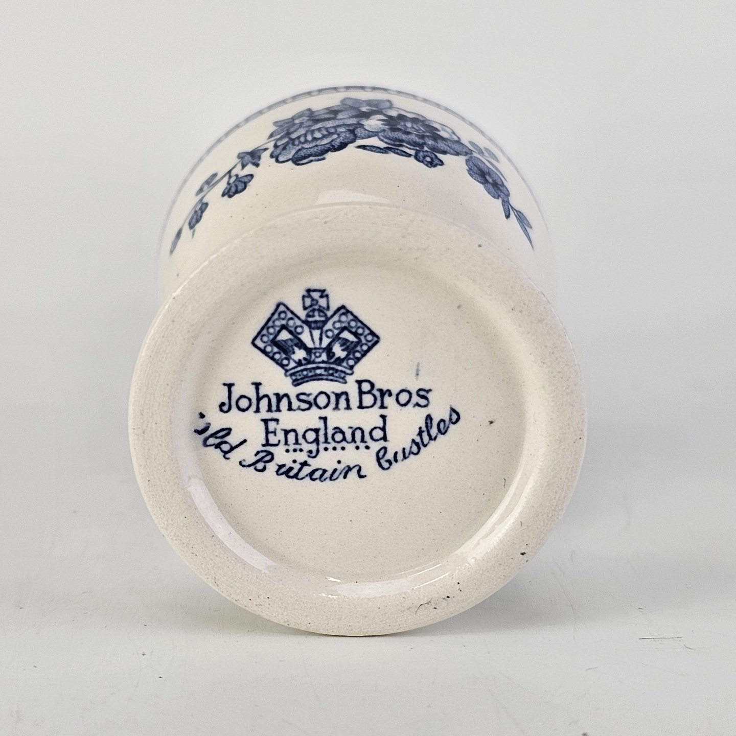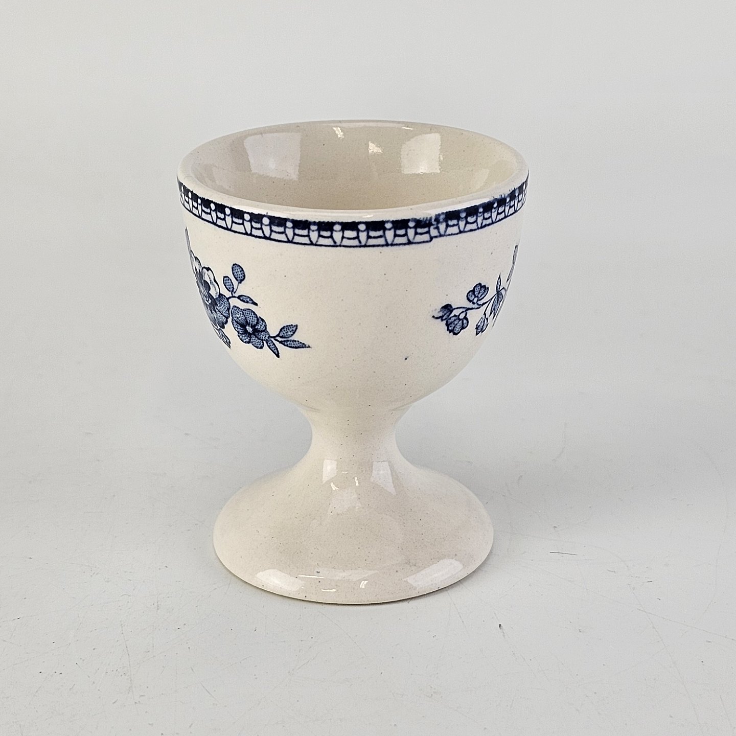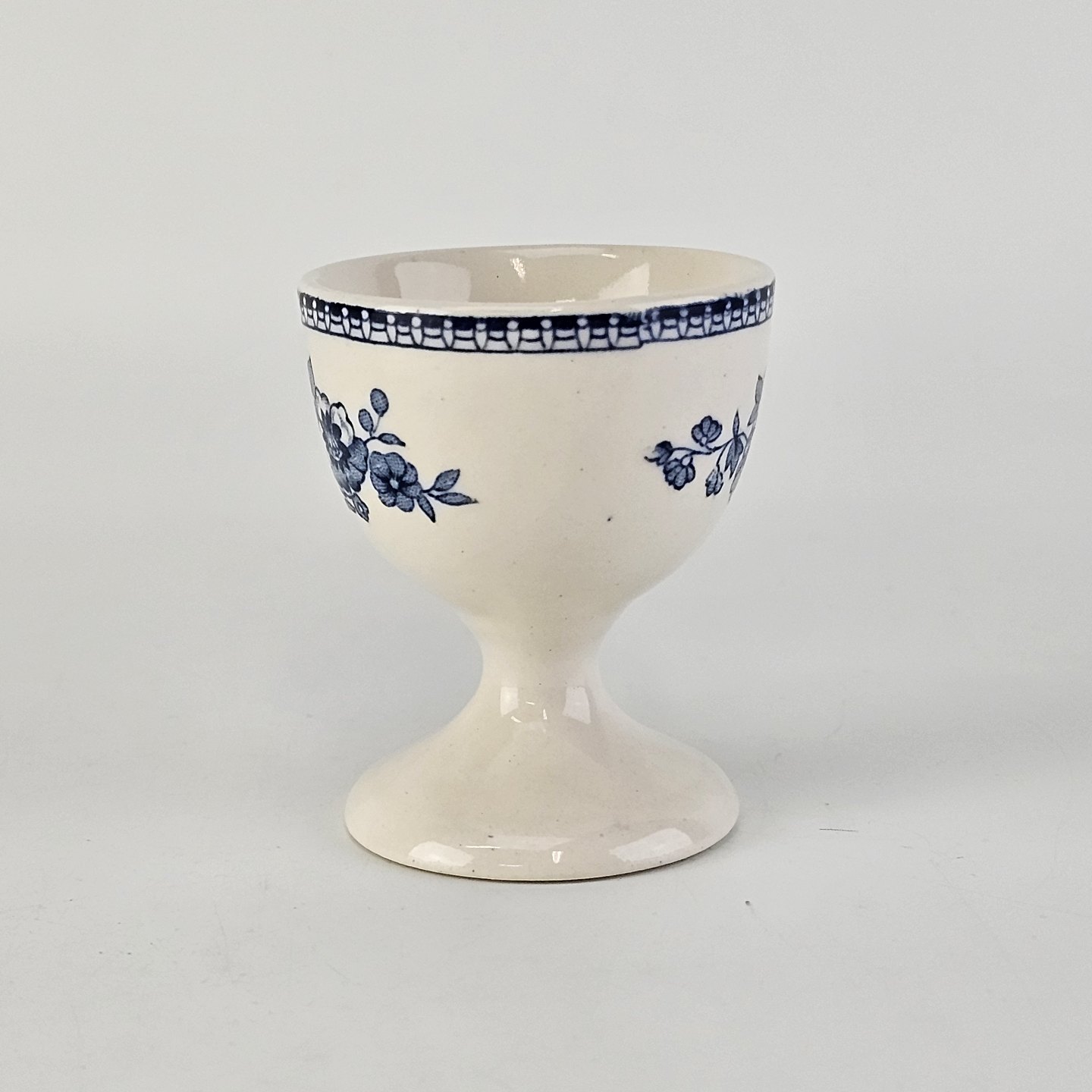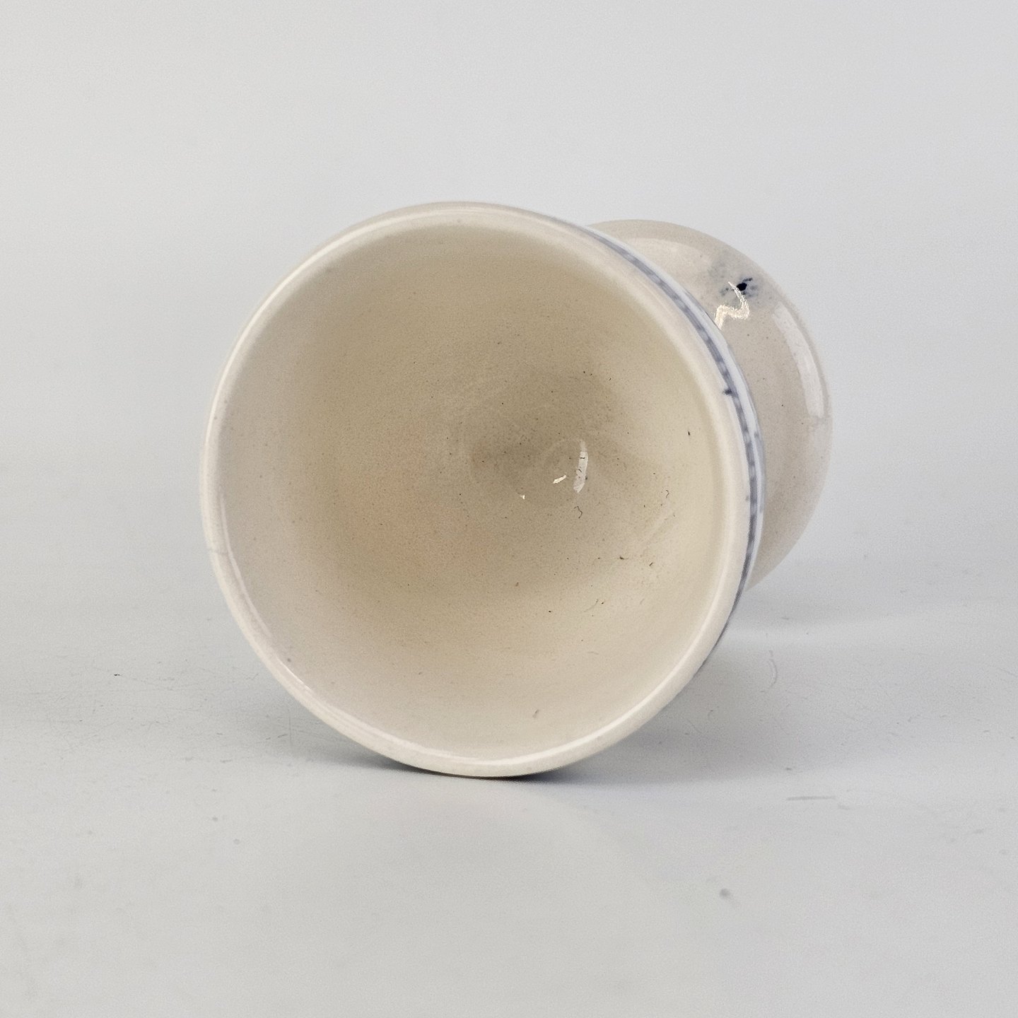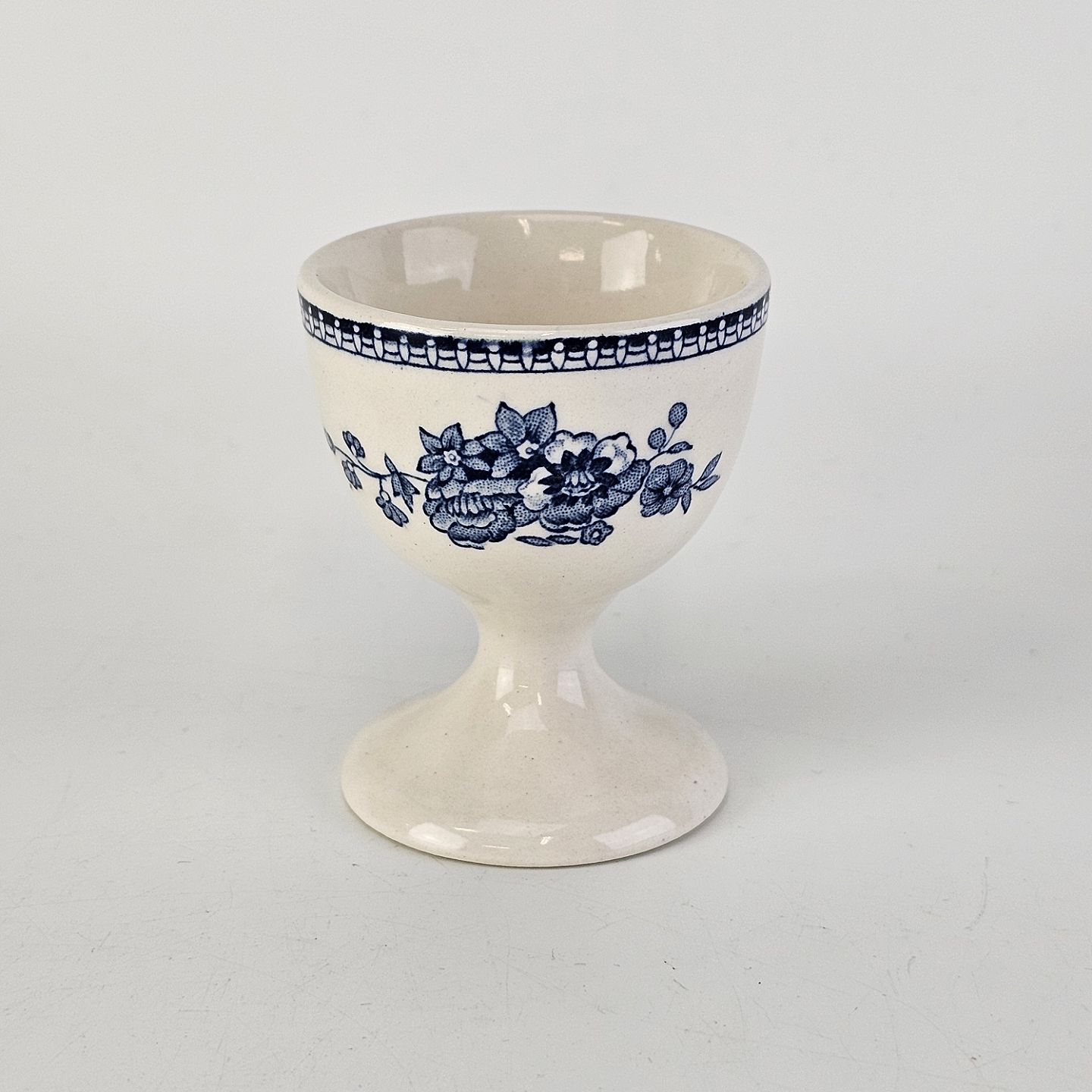 Beskrivelse: Æggebæger af engelsk fajance fra stellet Old Britain Castles i blå
