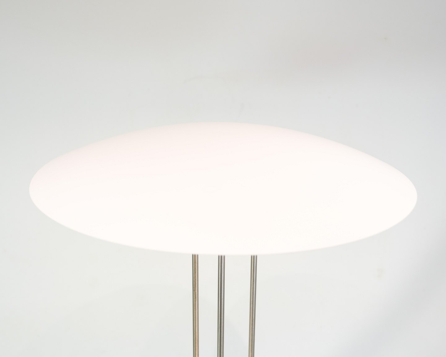 Beskrivelse: Gino gulvlampe, model Gino, designet af Bjarne Frost og Ole Jespersen i 1980’erne og produceret af Nordisk Solar Compagni. Stellet er forkromet metal og top skærmen er lavet af hvidlakeret metal.
