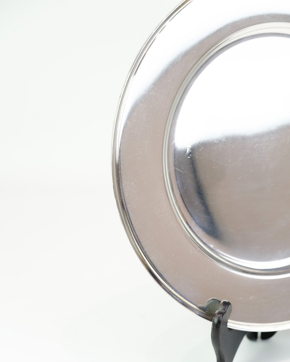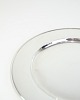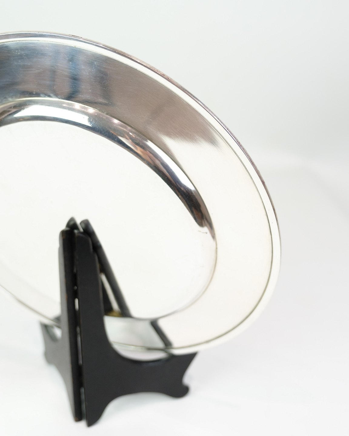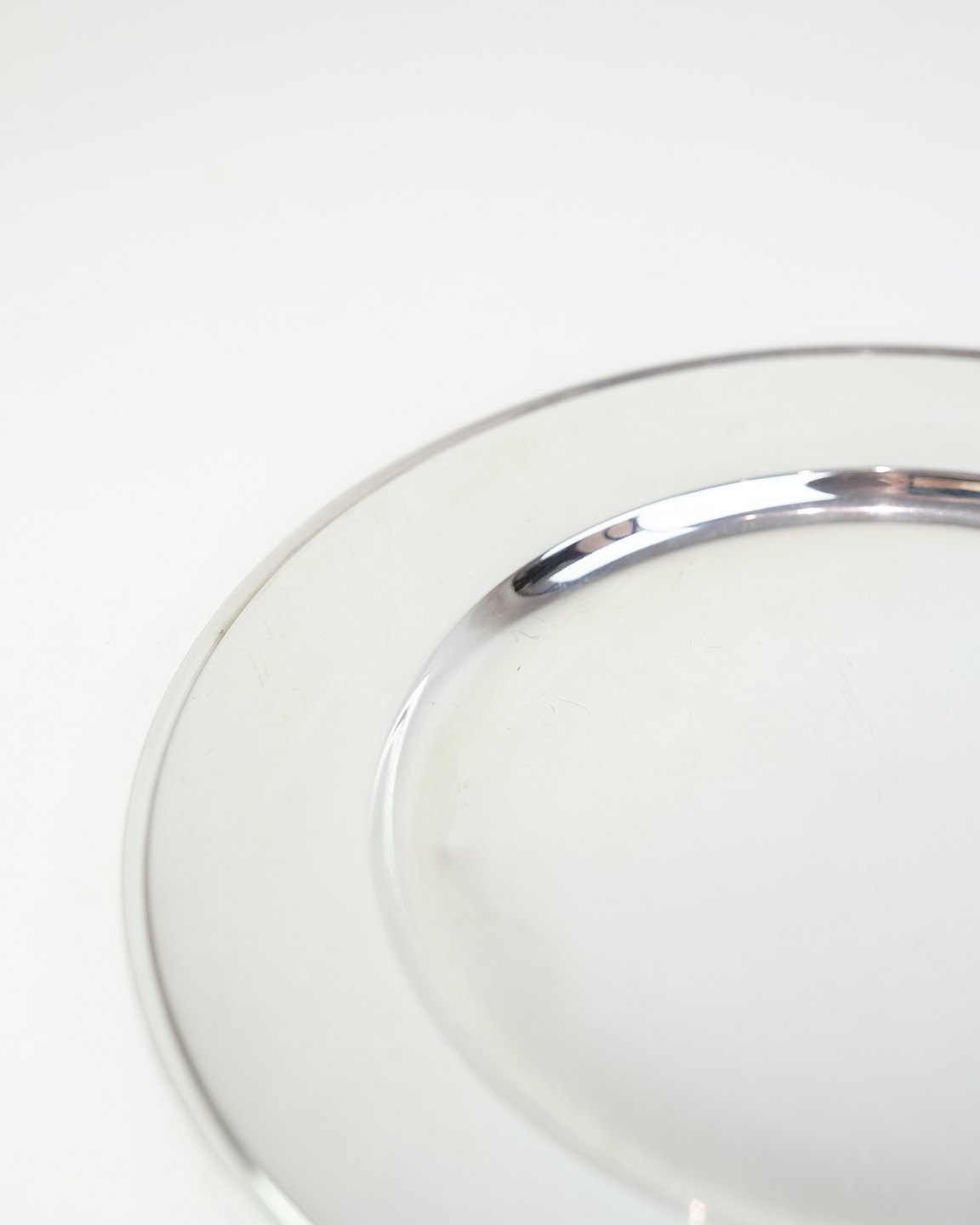 Description: Georg Jensen sterling silver place setting plate, Pyramid model No. 600E. Diameter 26 cm, weight 522 g. Elegant Danish design classic.
