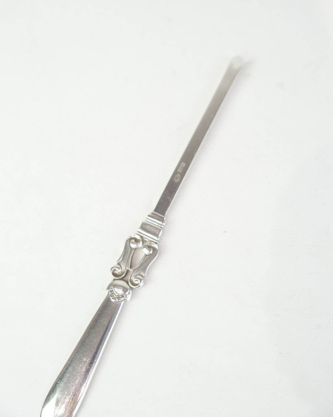 Beskrivelse: Georg Jensen Hummergaffel i sølv, mønster Konge. Designet af Johan Rohde i 1915. Længde 19cm. Klassisk dansk sølvarbejde.