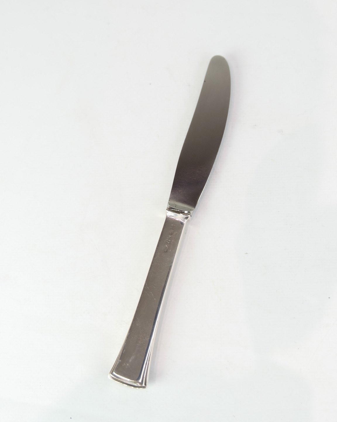 Beskrivelse: Evald Nielsen middagskniv i ægte sølv. Congo mønster No. 32 med kort skaft. Længde 23 cm. Klassisk dansk sølvarbejde.