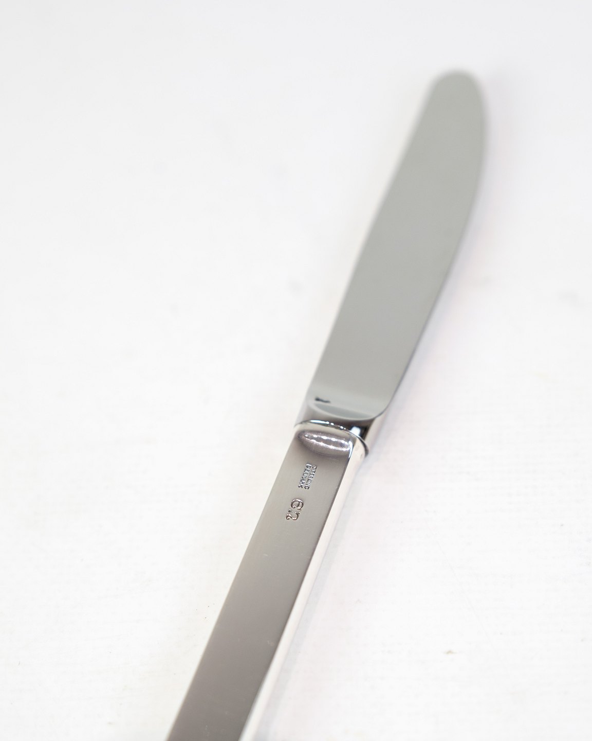 Description: Evald Nielsen lunch knife in real silver. Congo pattern No. 32 with long handle. Length 20 cm. Classic Danish silverwork.