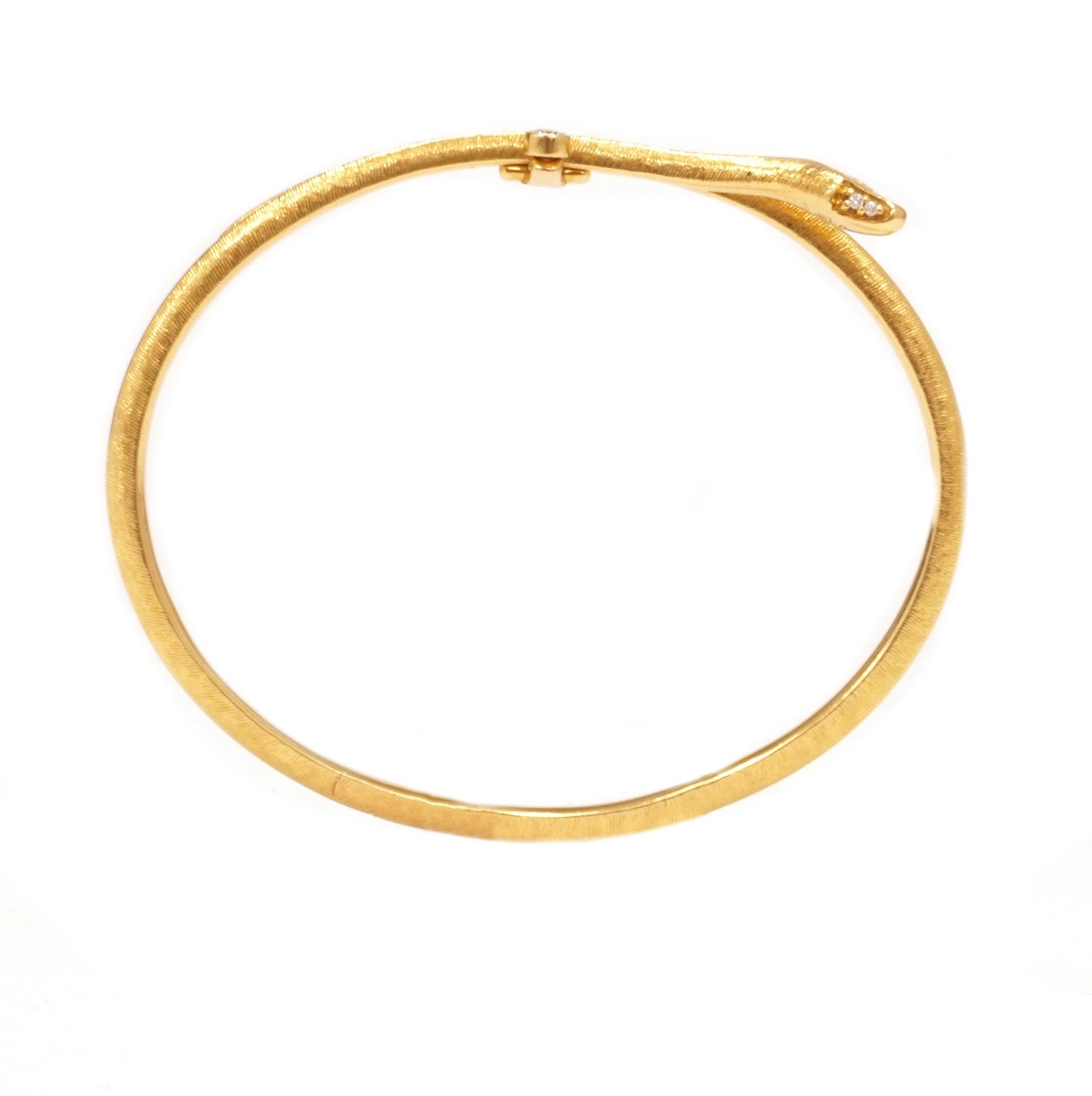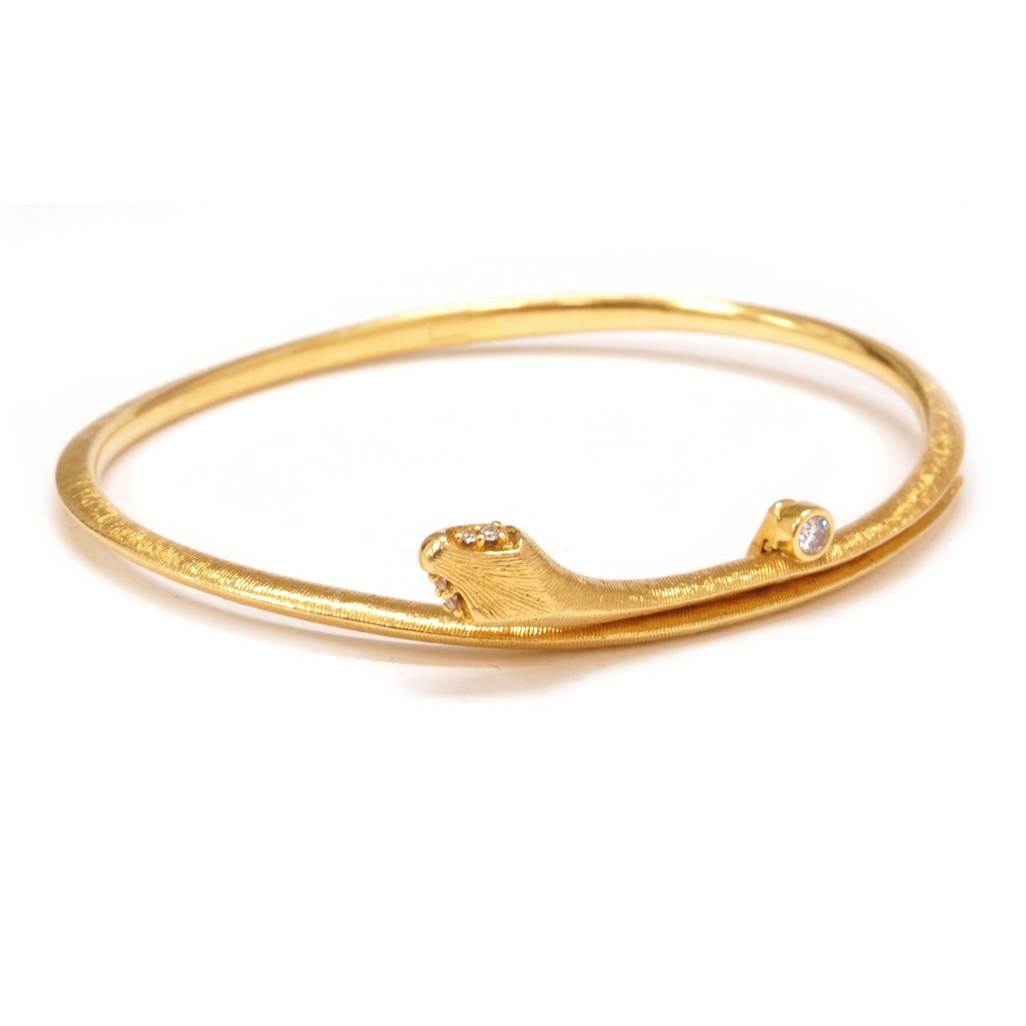 Ole Lynggaard Snakes armring. Oplukkelig oval armring i 18kt guld prydet med i alt 5 brillanter på i alt ca. 0,06ct. Stemplet Ole Lynggaard. Indvendige mål: 5,9x4,8cm