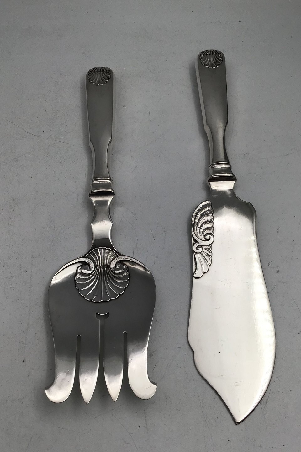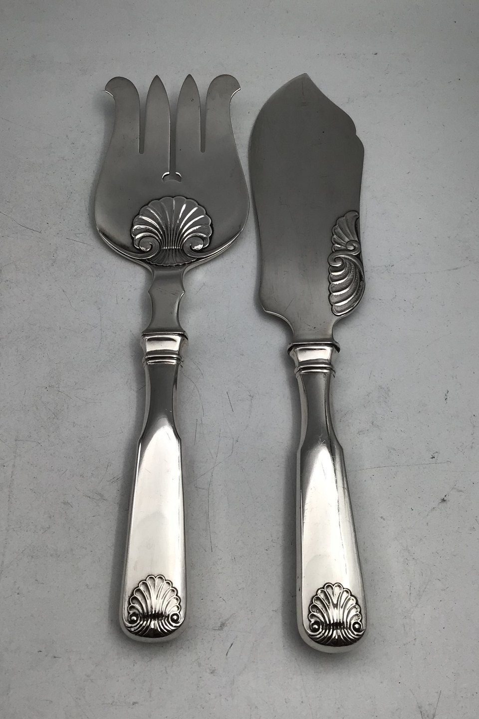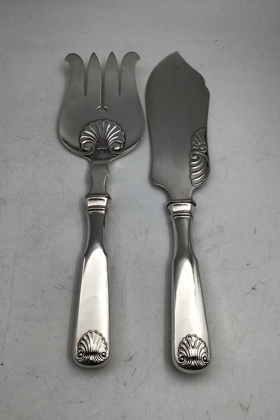 Beskrivelse: Dansk Sølv Musling Fiskeserveringssæt