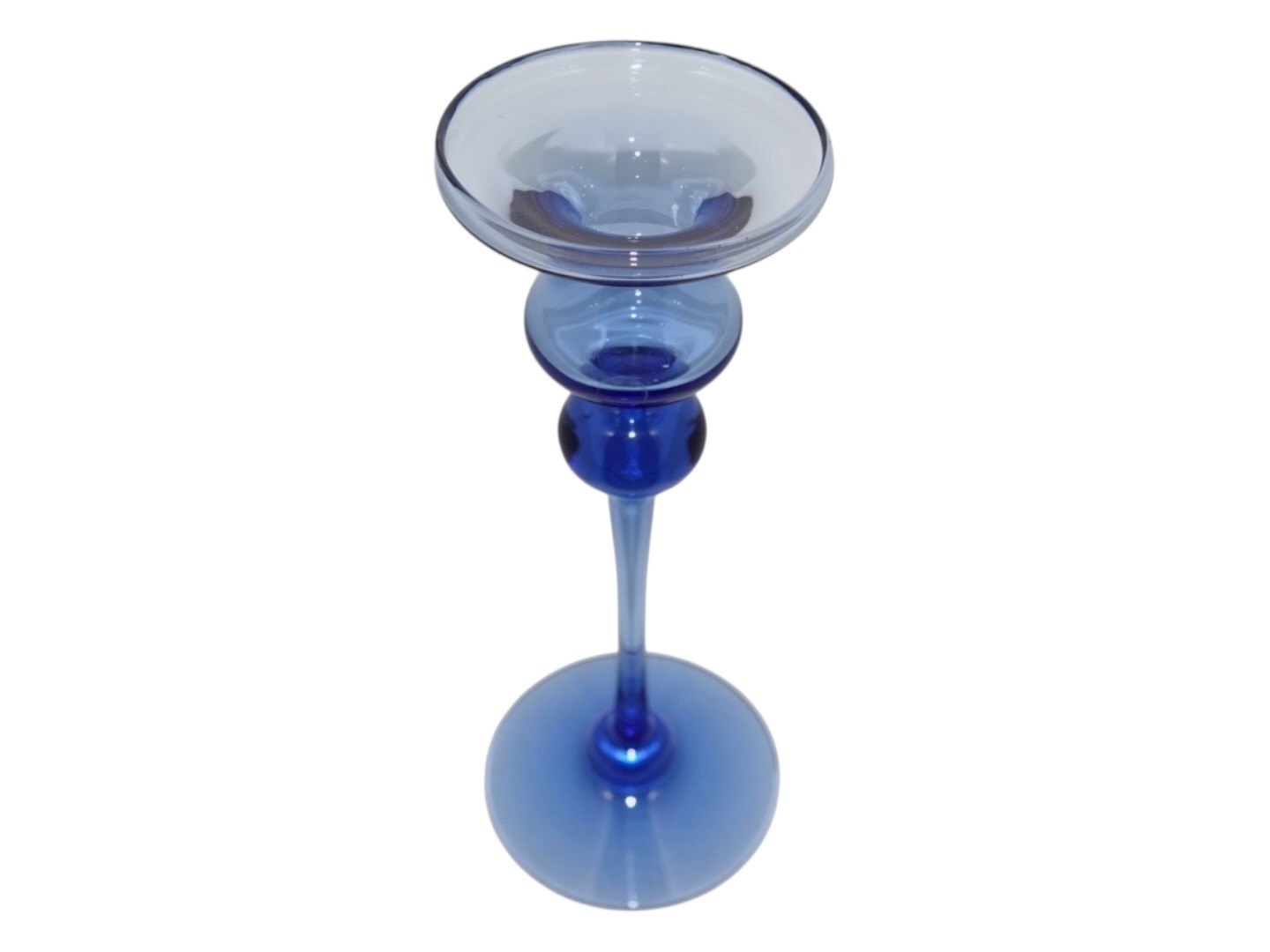 Beskrivelse: Holmegaard Cassiopeia lysestage i blåt glas.