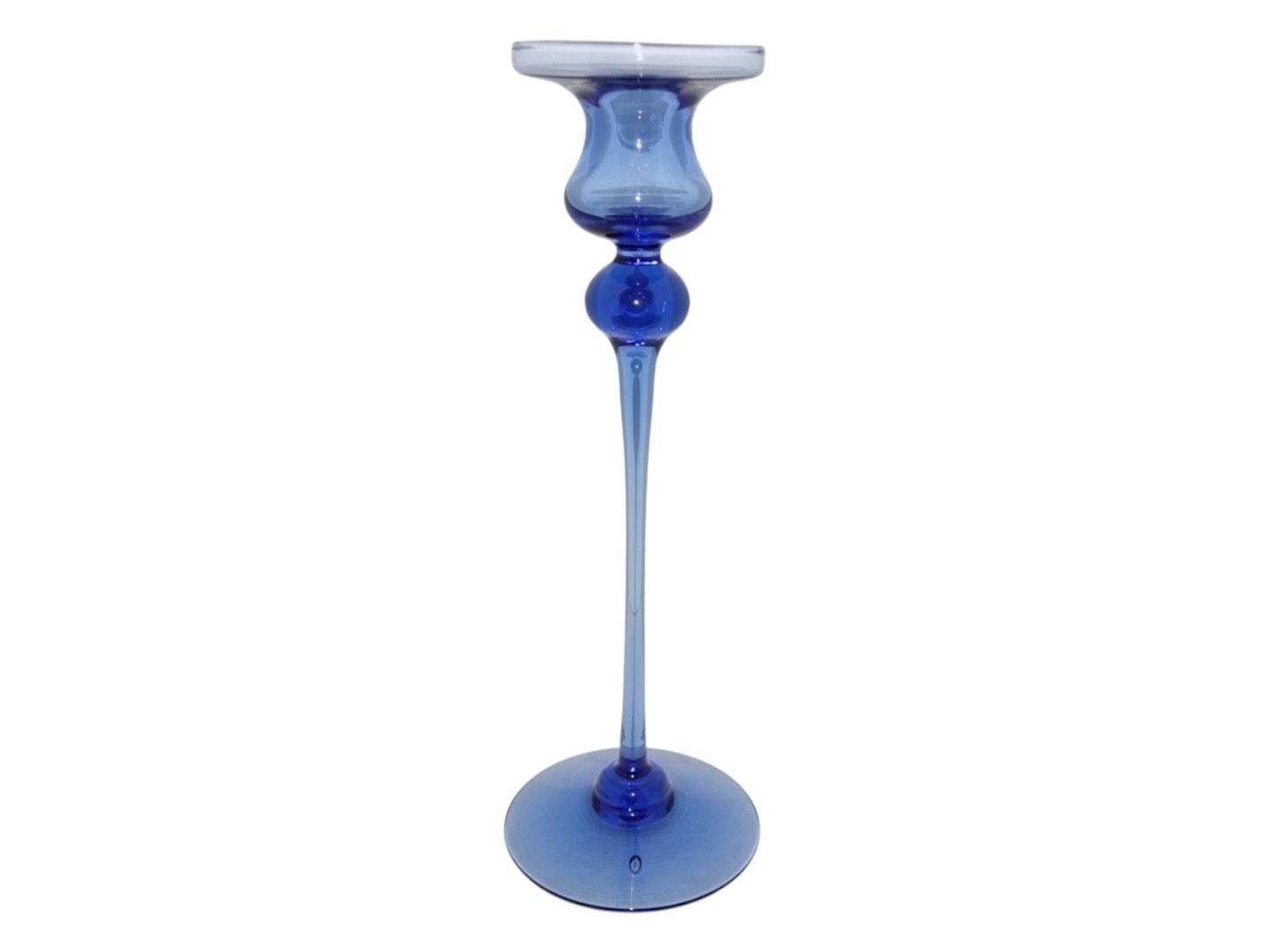 Beskrivelse: Holmegaard Cassiopeia lysestage i blåt glas.